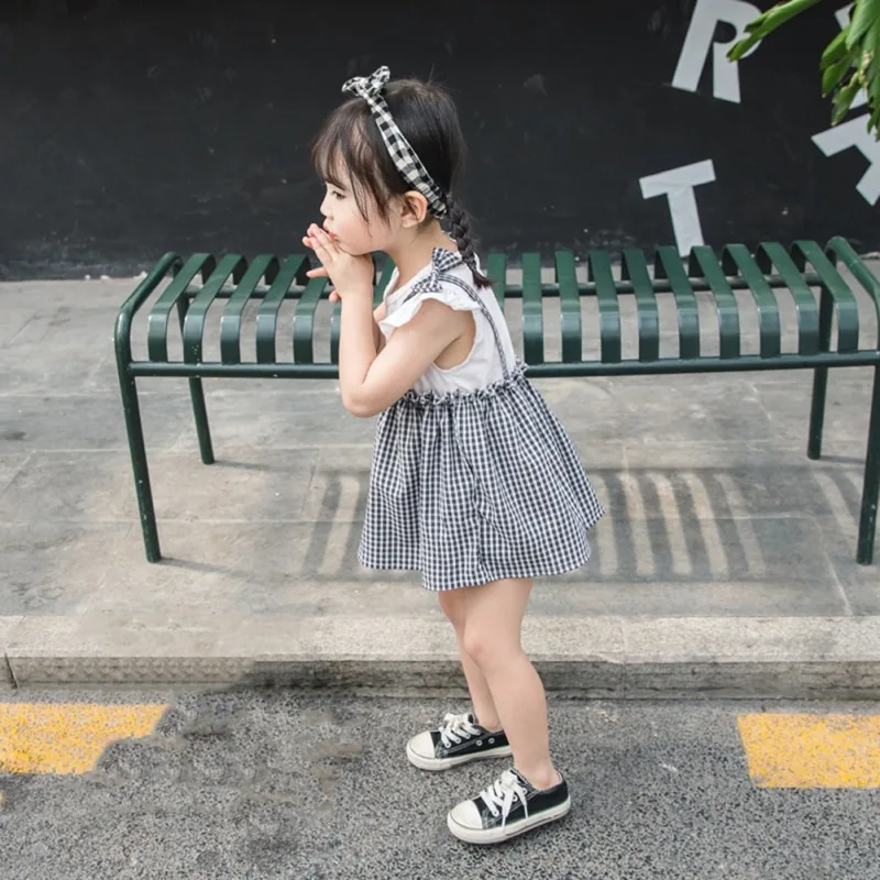 Искусственный Дизайн из 2 предметов с рисунком из мультфильма, стильное и Привлекательное платье в клетку, которое сделает вашу маленькую принцессу более милой и модной