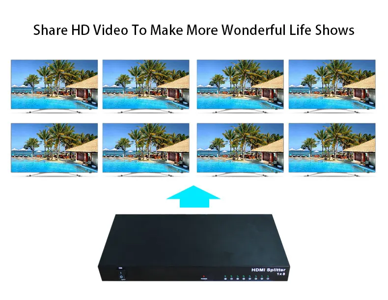 HDMI сплиттер AMS H1S8 1 в 8 out видео сплиттер HDMI сплиттер с источником питания для светодиодного наружного экрана
