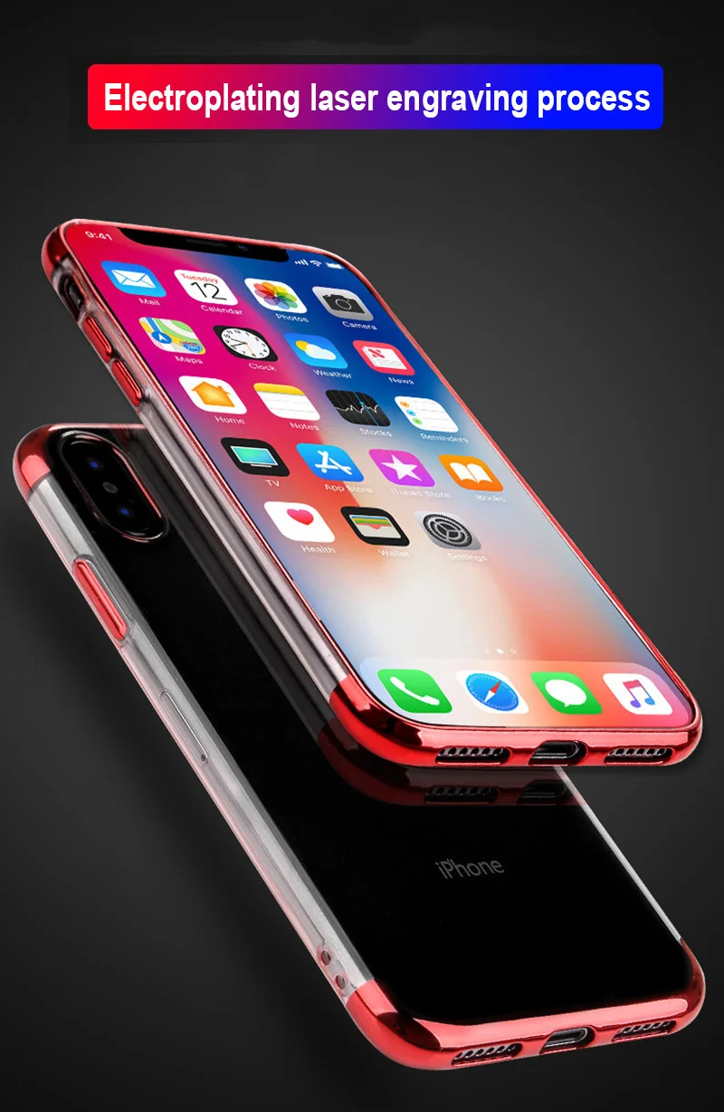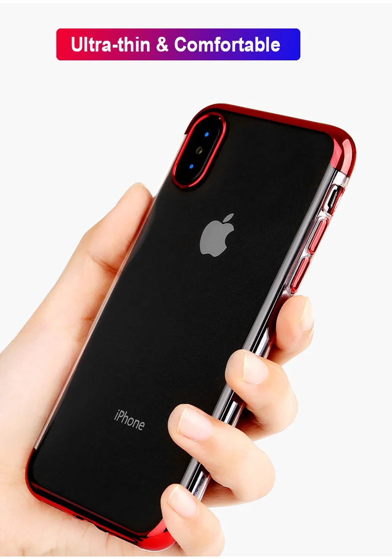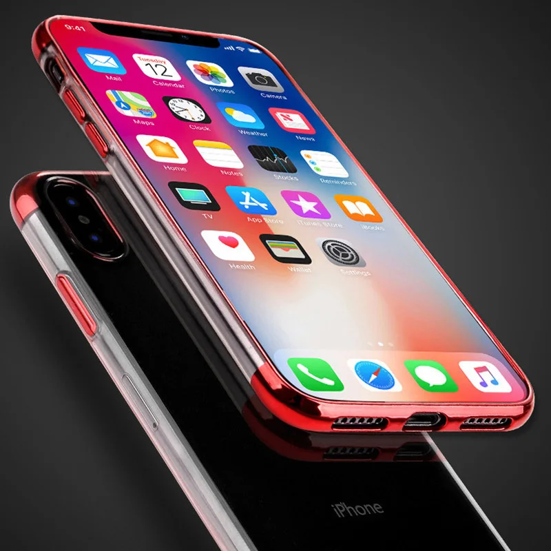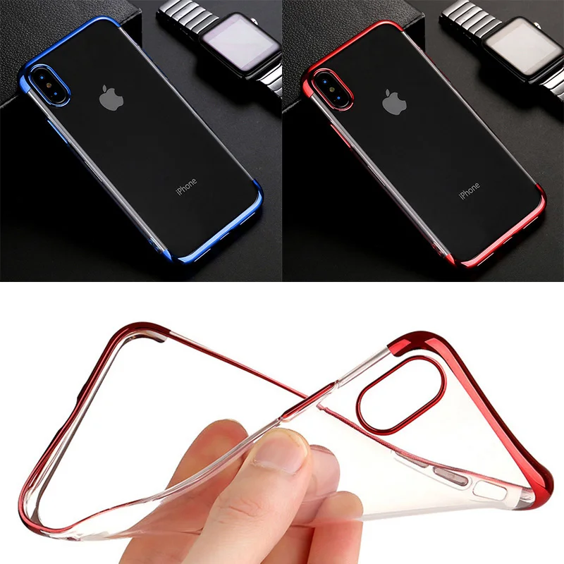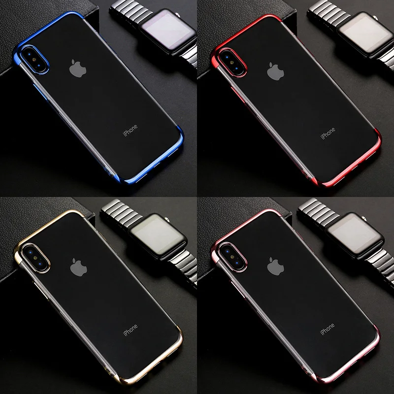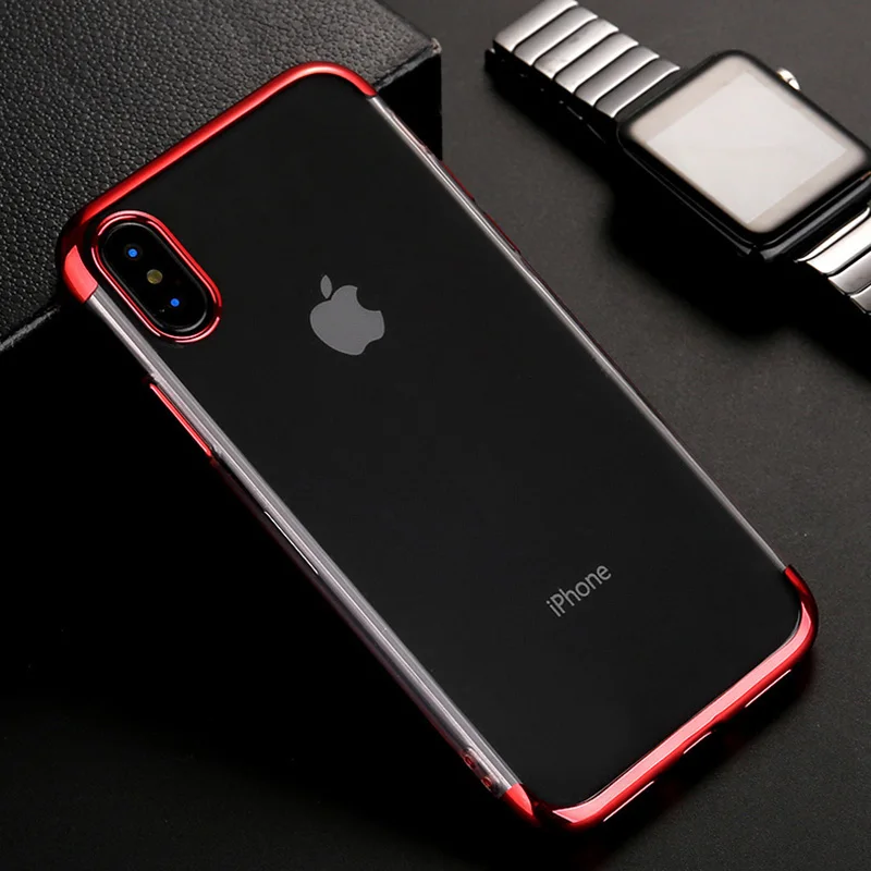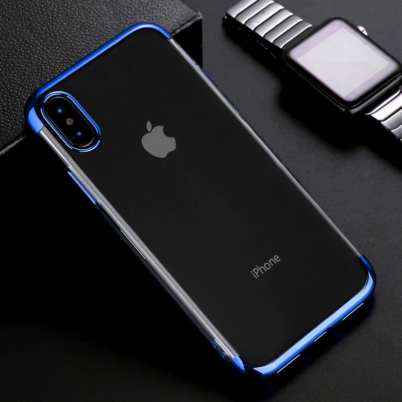 Прозрачный мягкий чехол для телефона из ТПУ с гальваническим покрытием для Apple iPhone X XS Max XR 8 7 6 6s Plus, ударопрочный силиконовый прозрачный Чехол