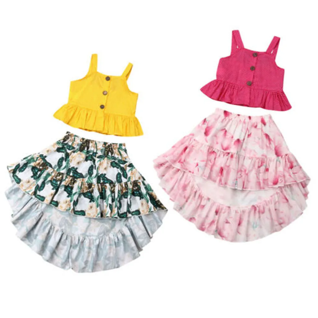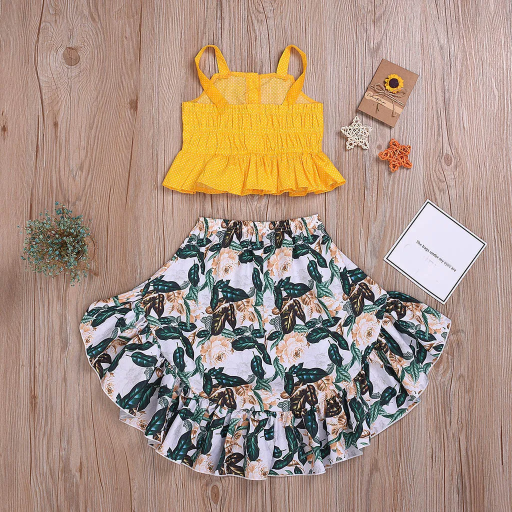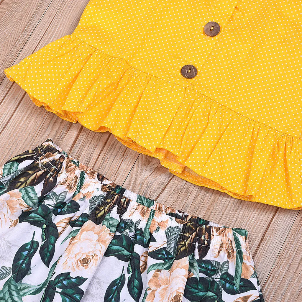 Топы на бретельках с оборками и цветочным принтом для маленьких девочек, шорты, комплект одежды из 2 предметов