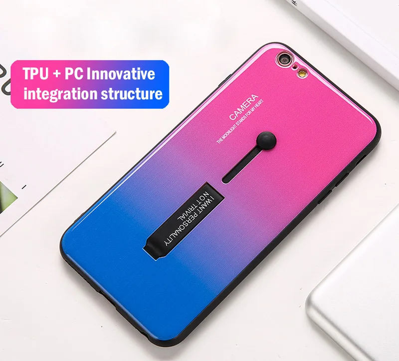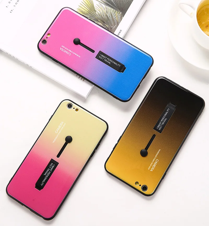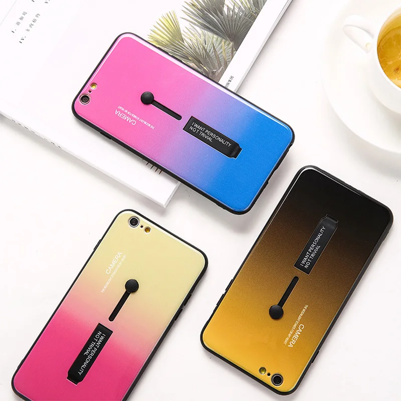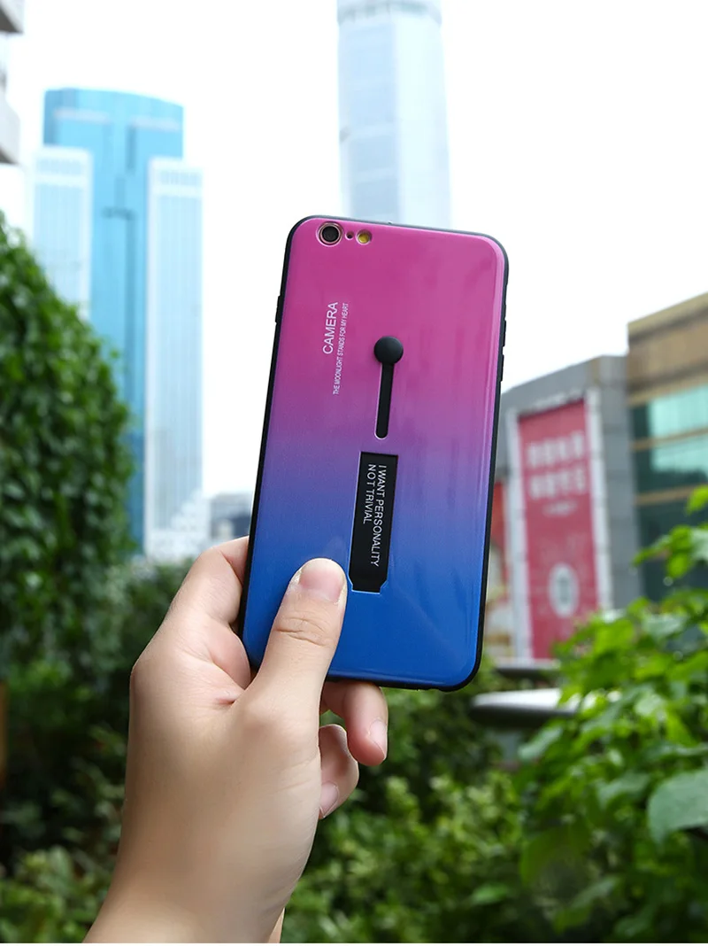 Чехол со скрытым кольцом для iPhone X XR XS Max с держателем и петлей на палец Радужный цвет градиентный чехол для Apple iPhone 7 8 6 6s Plus