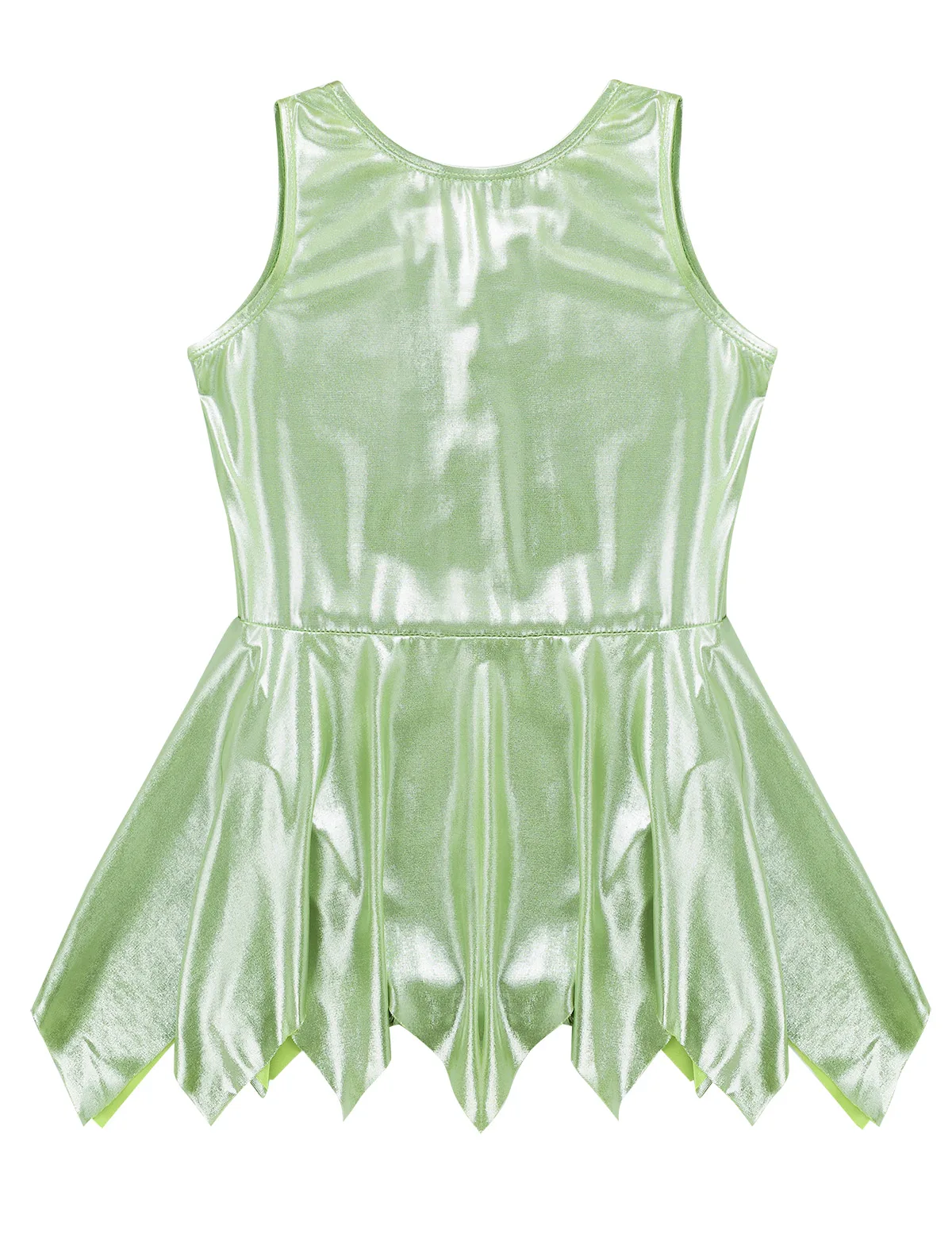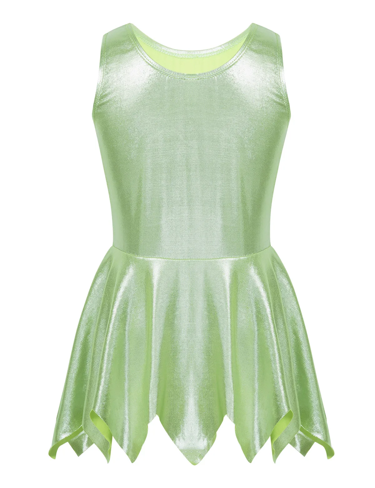 1 layer jagged-edge overlay attached around the waist. Stretchy fabrics, comfortable to wear. Stylish and beautiful dancewear for your girl.