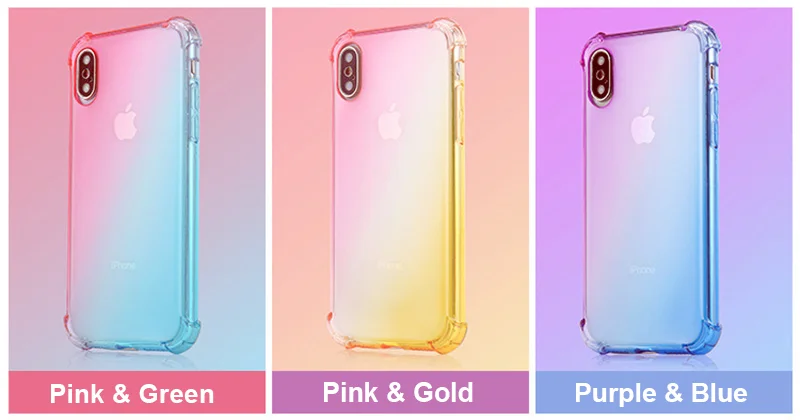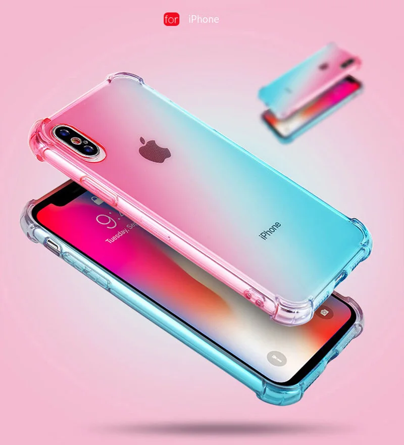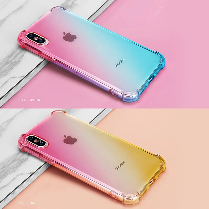 Роскошные 4 углах двойной градиентная расцветка; Высота чехлов из термопластичного полиуретана (TPU чехол для телефона Apple iPhone 11 Pro Max X XS XR XS Max 8, 7, 6, 6S Plus, iPhone SE