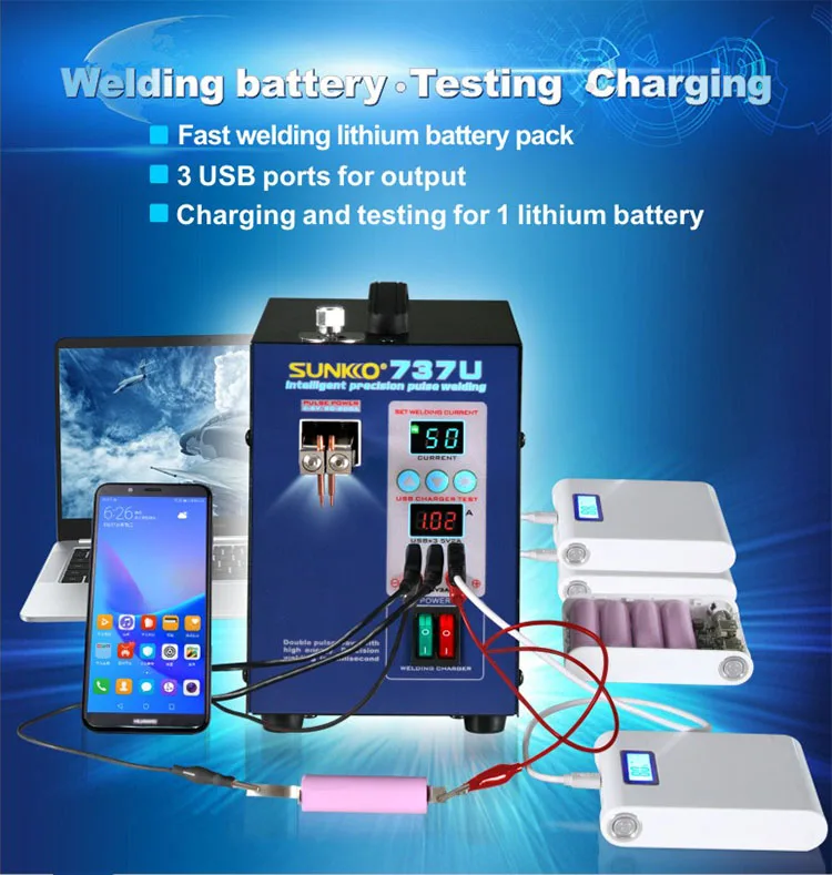 SUNKKO 737U точечная сварочная машина 2.8KW двойная импульсная аккумуляторная машина для точечной сварки USB зарядка тест 18650 батарея пакет сварки