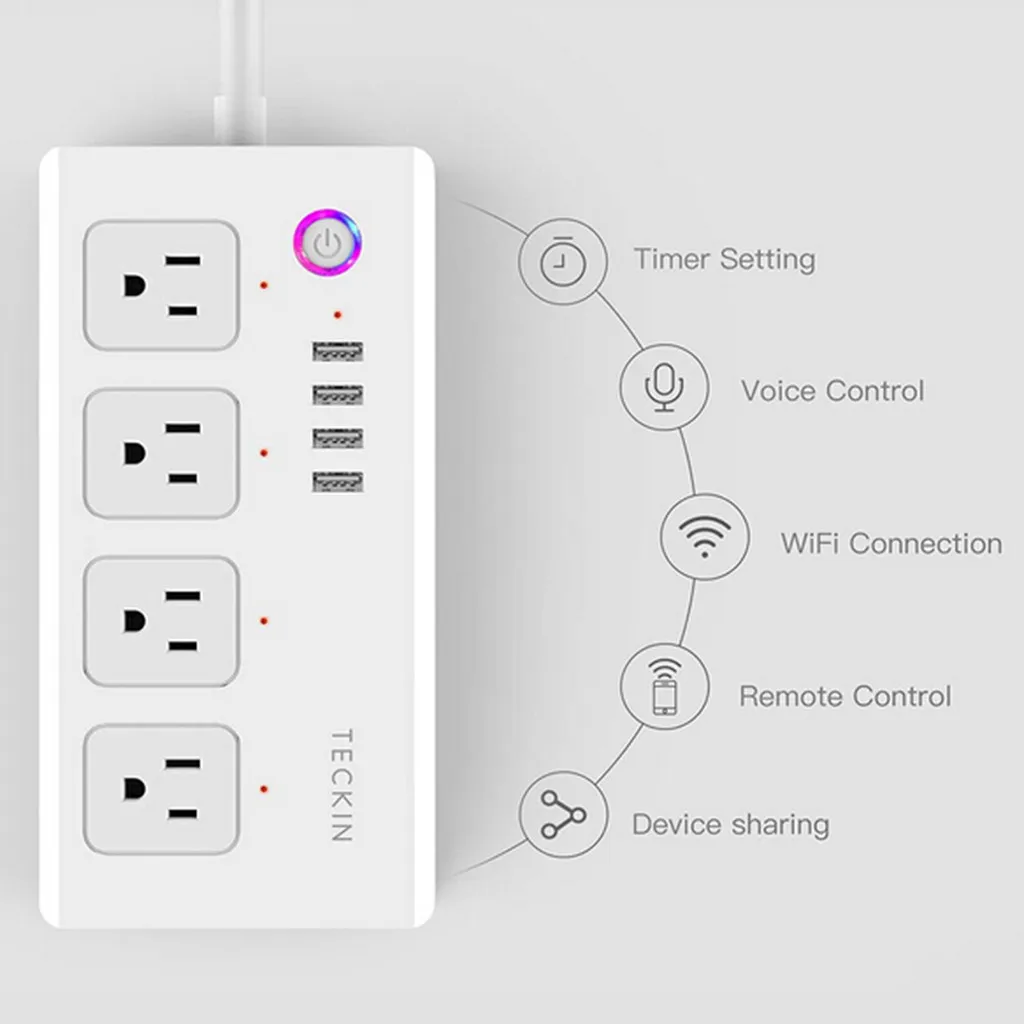 Умная полоса питания, WiFi, блок питания, совместимый, Echo,Google Home и IFTTT, TECKIN, защита от перенапряжения с 4 портами USB для зарядки и смарт-вилки переменного тока для нескольких розеток
