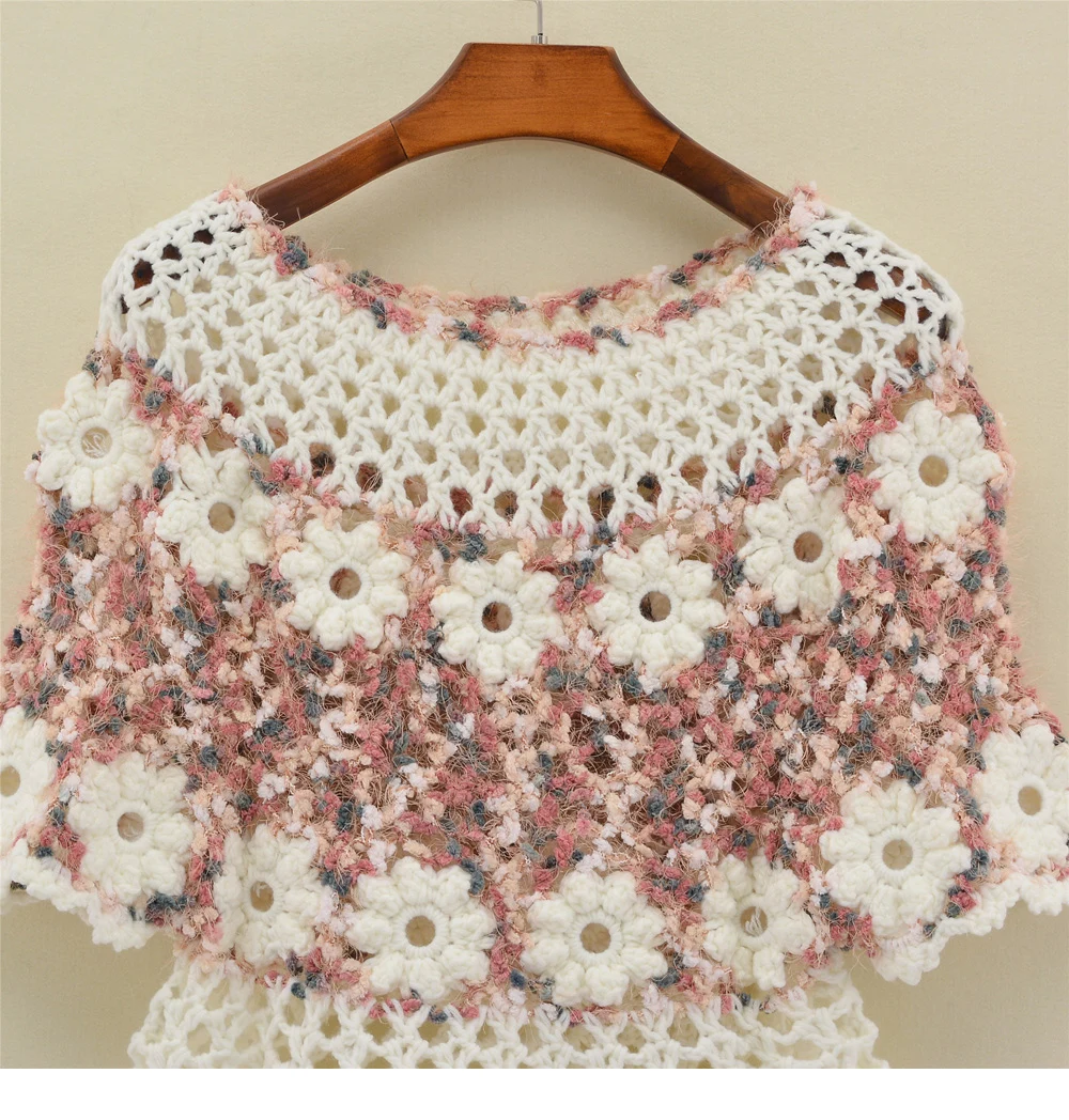 Высокое качество Материал верха Спущенное плечо Короткий рукав Пуловер Ручная вязка