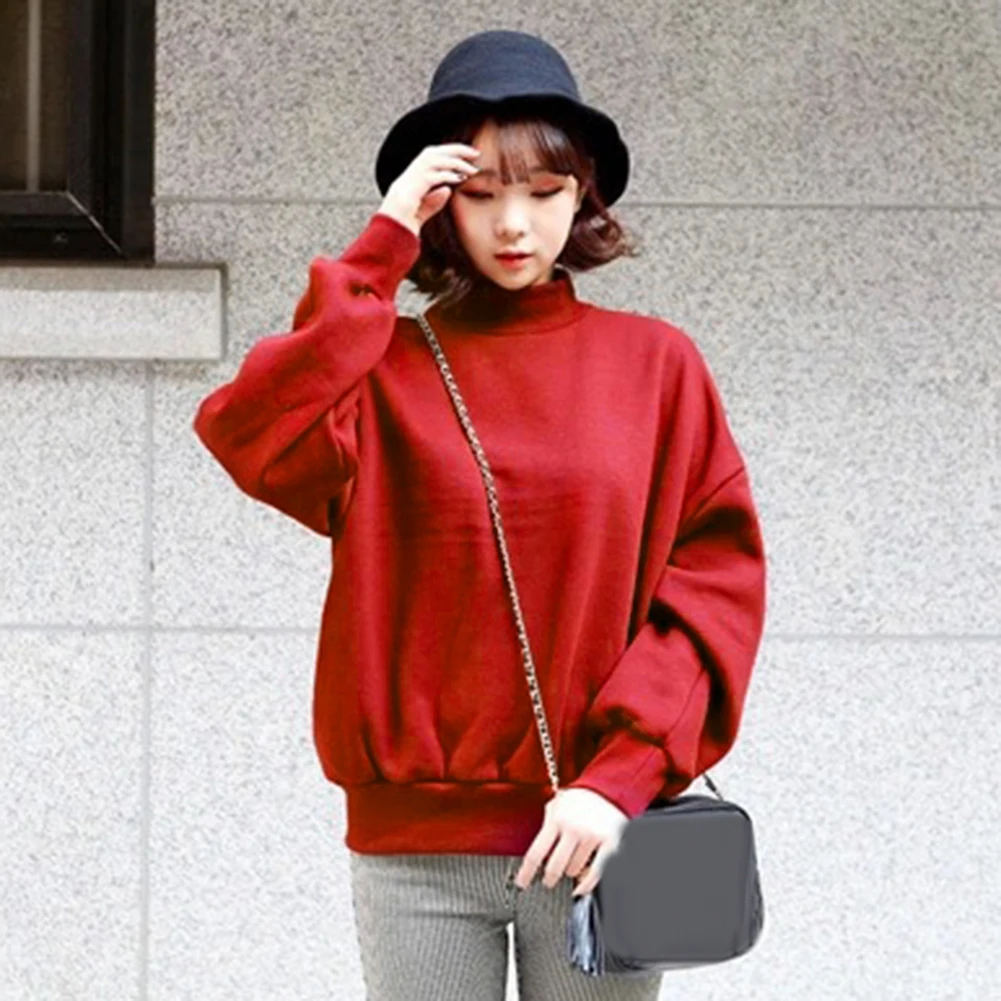 Осенне-зимняя повседневная женская однотонная толстовка с круглым вырезом и длинным рукавом, пуловер