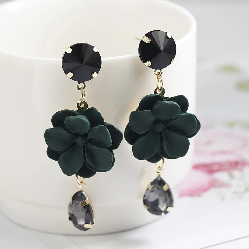Модные очаровательные ювелирные изделия, черный/темно-зеленый цветок, капли воды, висячие серьги, лучший подарок для женщин, подарок для девушек, оптовая продажа