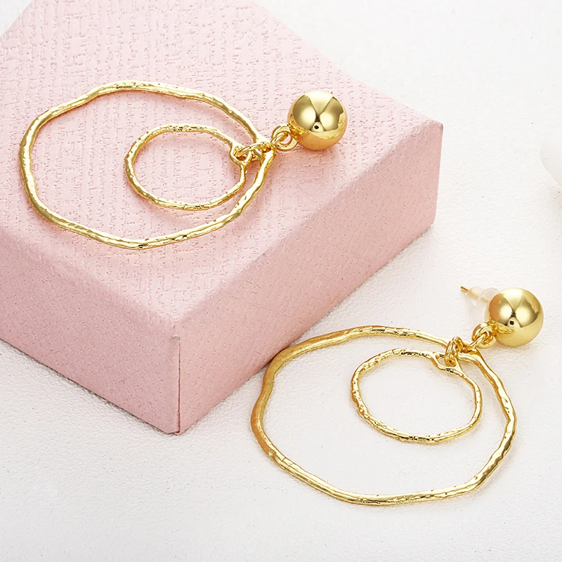 Модные геометрические Золотые круглые длинные висячие серьги ручной работы для женщин и девочек, популярные Висячие серьги, европейские ювелирные изделия
