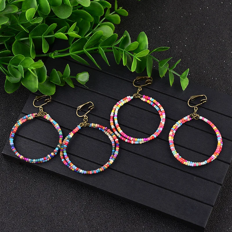 Африканские богемные разноцветный бисер, большие массивные круглые серьги-кольца для женщин, модные шикарные серьги с петлей, Женские Ювелирные изделия