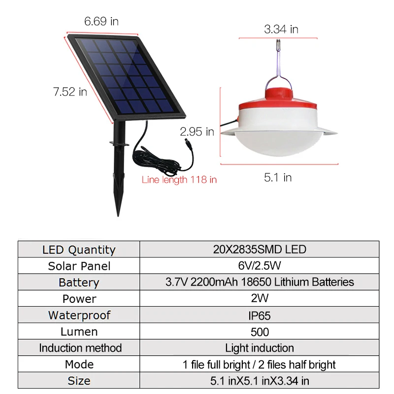 Особенности: ● Два режима: первый высокий светильник и второй низкий светильник. ● Раздельная конструкция: более широкий спектр применения, более простая установка и не ограничена специальным углом установки. Когда мощность достаточно, легче и удобнее использовать осветитель непосредственно вдали от солнечной панели. Тип установки подвески, более удобно носить с собой. ● Широкий спектр применения Используется для дорог, дворов, садов, аллеев, скамейок, дворов, заборов, палуб, подъездов и других мест. ●Automatic зарядки Встроенный датчик дня и ночи. В течение дня, когда есть солнечный свет, солнечные панели преобразуются в солнечную энергию и хранятся в батарее. Он автоматически будет светильник в сумерках. Энергосбережение и защита окружающей среды Меры предосторожности: 1. При первом использовании, пожалуйста, зарядите на солнце в течение нескольких часов перед работой. 2. Когда индикатор мигает, это означает, что мощность очень низкая. В противном случае продукт скоро перестанет работать. 3. Производительность зарядки солнечных панелей зависит от времени освещения и погодных условий. Чем крепче солнце, тем дольше время и меньше время зарядки. В пасмурные или дождливые дни снижается производительность батареи, что сокращает время освещения. 4. Солнечные панели должны быть покрыты пылью из-за длительного использования на открытом воздухе. Для лучшей производительности зарядки очистите его по мере необходимости.