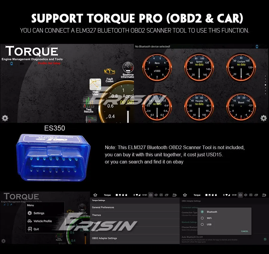 -Поддержка Torque Pro(OBD2 и Car): Да, вы можете подключить сканер Bluetooth OBD2 для использования этой функции