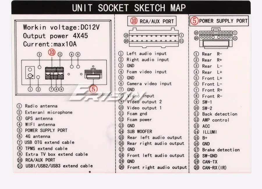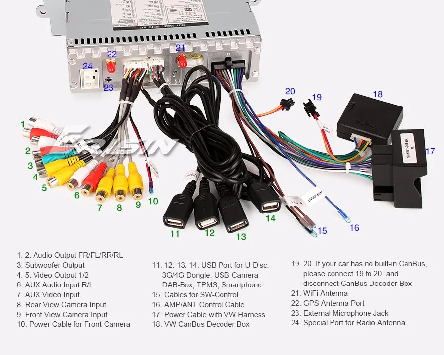 -Положение: 4 USB на задней стороне, могут быть подключены к мультимедиа, 3G/4G, TPMS, камере, DAB + Box, смартфону
