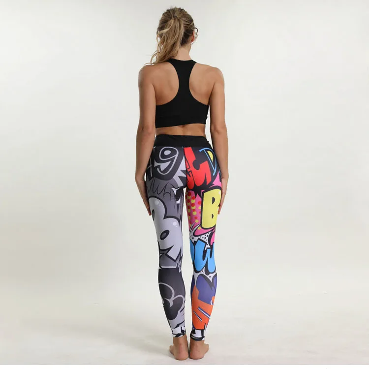 Спортивные Леггинсы для женщин, штаны для фитнеса и йоги, спортивные штаны с мультяшным принтом, Леггинсы для йоги, дышащие спортивные колготки для бега, спортивная одежда