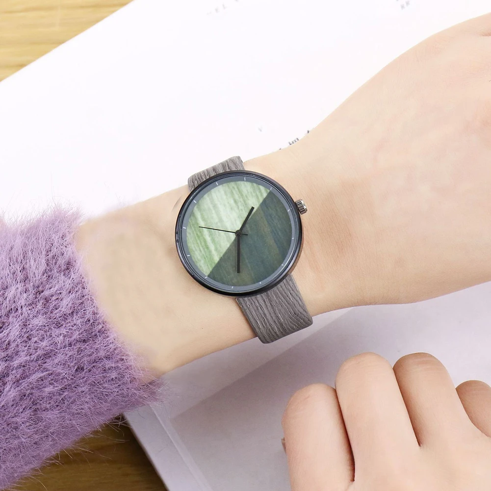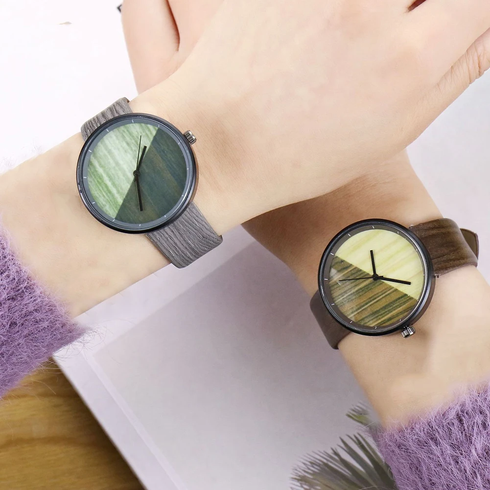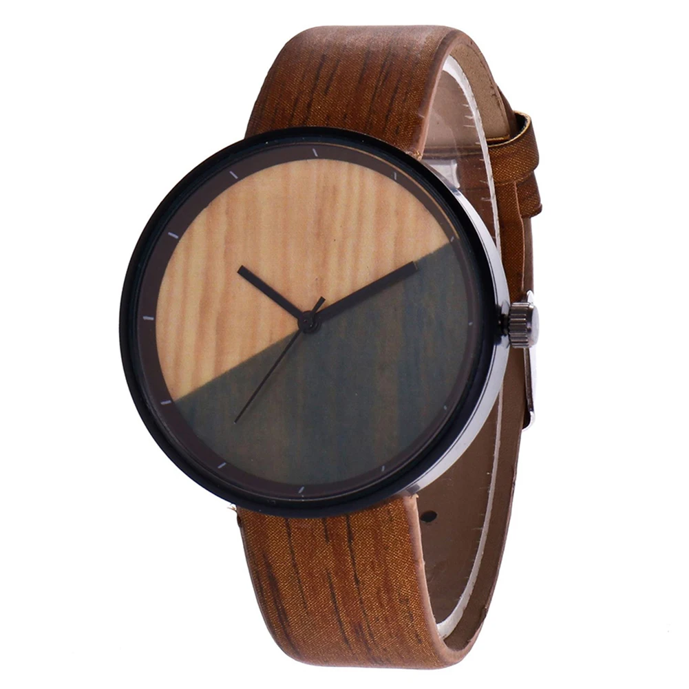 Уникальные часы с деревянным зерном, унисекс, круглый циферблат, искусственная кожа, ремешок, без цифр, аналоговые кварцевые наручные часы, высокое качество, пара часов, Прямая поставка