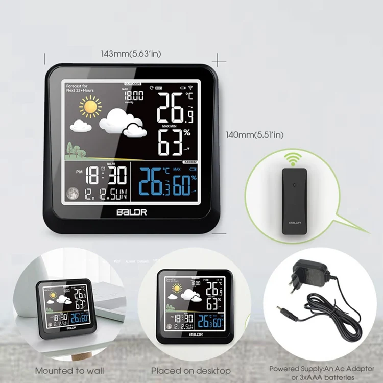 Baldr цветной дисплей метеостанция с Луной фазы диммер в/Открытый термометр гигрометр Повтор Будильник удаленный датчик