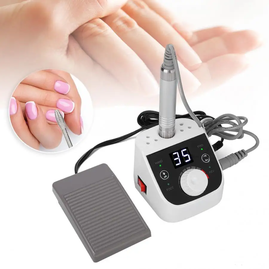 Электрическая дрель для ногтей 35000 об/мин, шлифовальный станок для дизайна ногтей, устройство для маникюра, 100-240 В