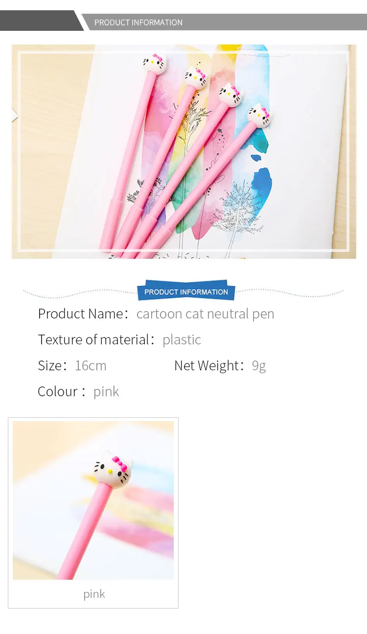 1, стиль: забавная креативная крутая гелевая ручка с мультяшными животными 2, материал: пластик, резина 3, Спецификация: Вес: 9 г Длина: 16 см 4, особенность: Взрослый учитель медсестра студентка дети гладкое письмо ежедневное использование ручка 5, Функция: отделение для деловых подписей инструмент, школа, студенческий экзамен стационарный 6, на заказ: Да, логотип может быть настроен с MOQ, принимаем PS (фотошоп), AI (адоба иллюстратор), CD (CorelDraw) Формат