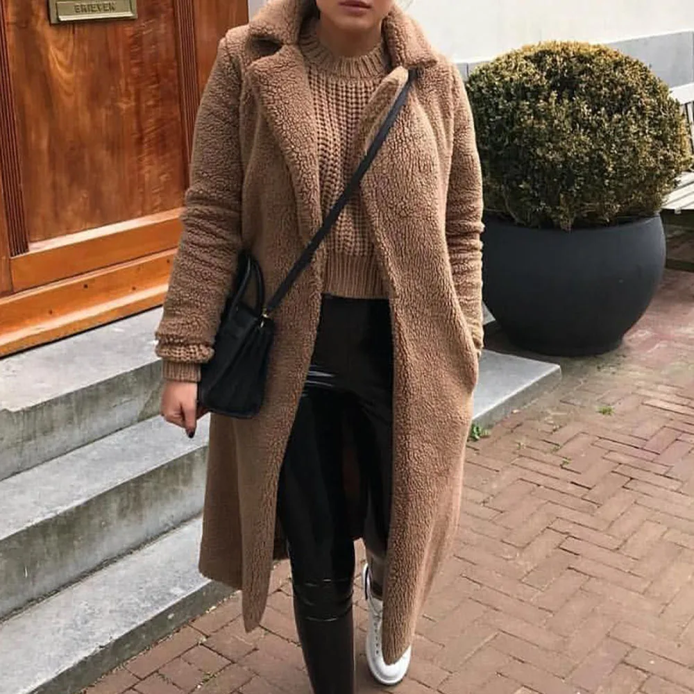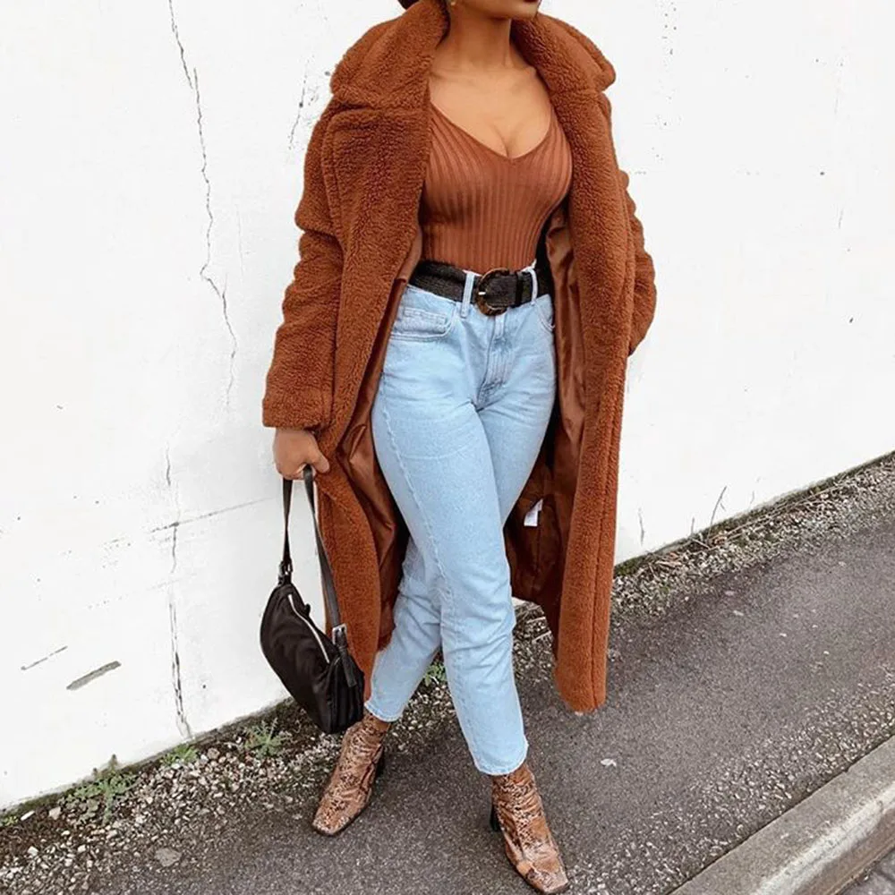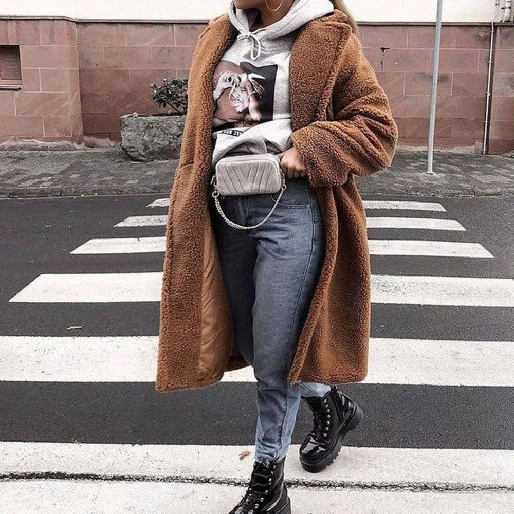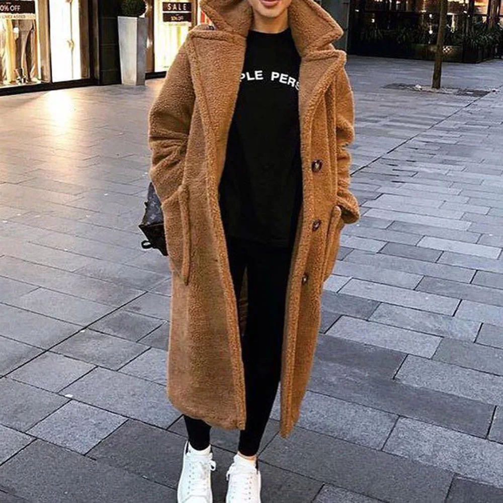 Teddy Bear Long Coat Women Winter Overcoat Plus Size Fleece Khaki Streetwear Jacket Coat Lazy Style Pink Loose Casual Outerwear