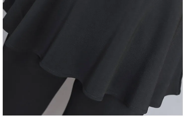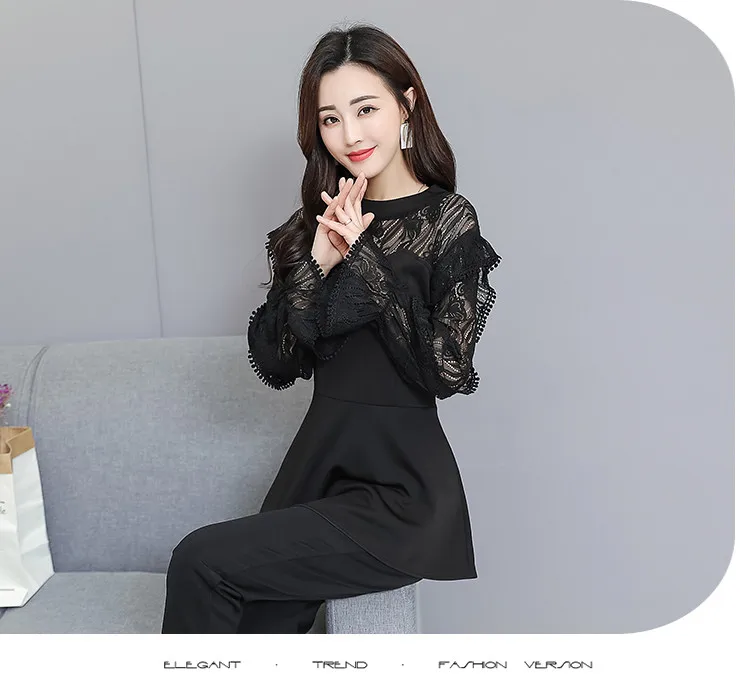 Xl-5xl размера плюс черные кружевные женские комплекты из двух частей с расклешенными рукавами, туника, топы + брюки, офисные элегантные женские комплекты AE306