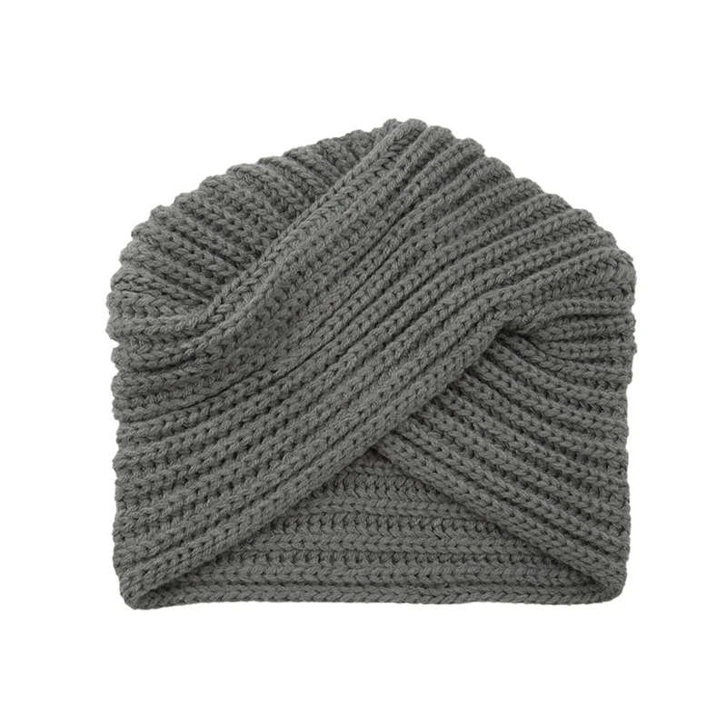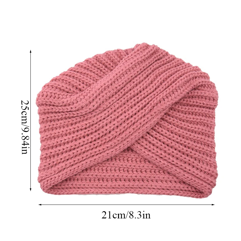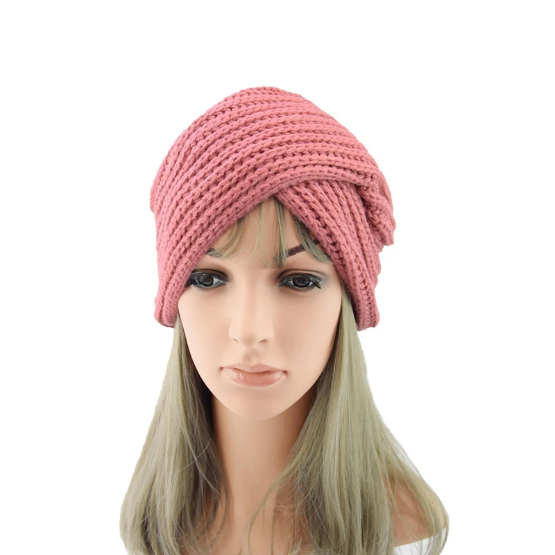Зимняя шапка-тюрбан в богемном стиле с перекрестной вязкой, однотонная мусульманская шапка