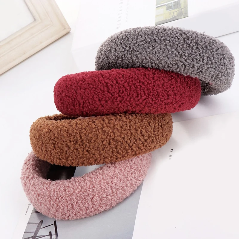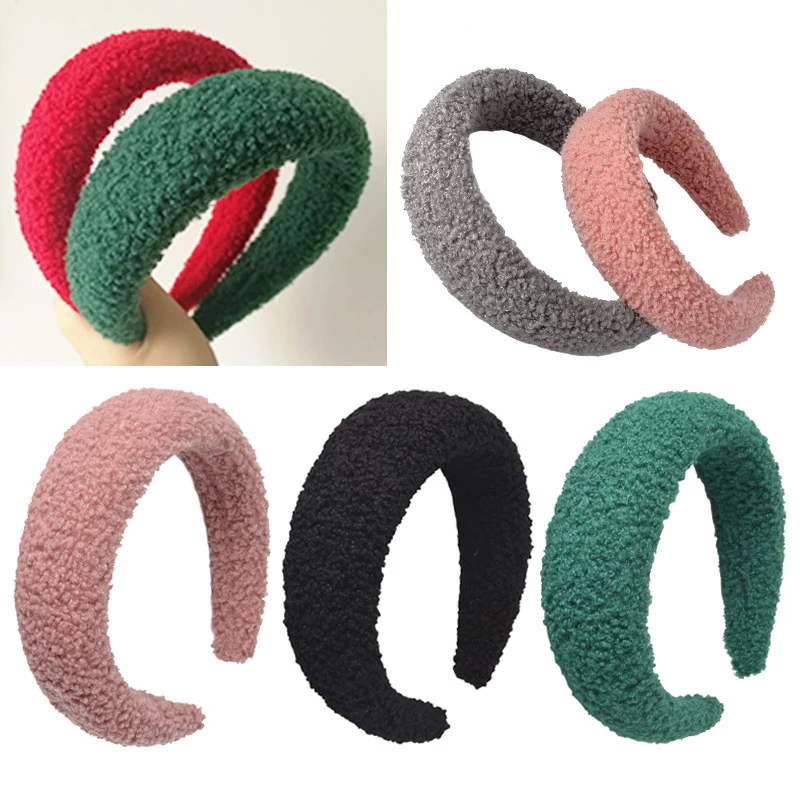 Модный однотонный плюшевый ободок из губки, широкий ободок, теплый зимний обруч для волос, головной убор