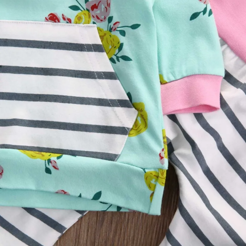 Повседневный комплект из толстовки и штанов в полоску с длинными рукавами и цветочным принтом, который сделает ваших детей стильными и привлекательными