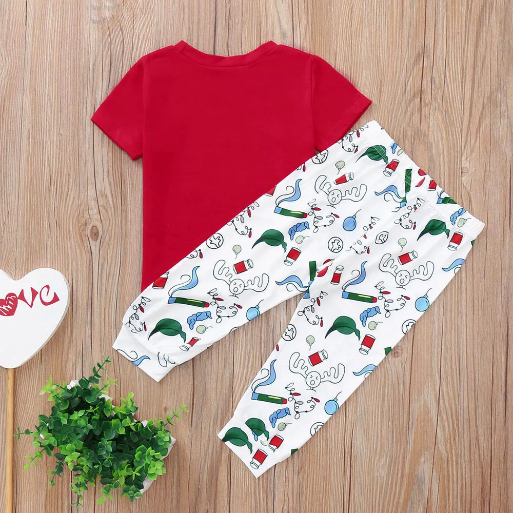2 предмета, Рождественская футболка с надписью для маленьких девочек Топы + штаны, Рождественский комплект одежды Одежда для новорожденных детская одежда, roupa infantil HOOLER