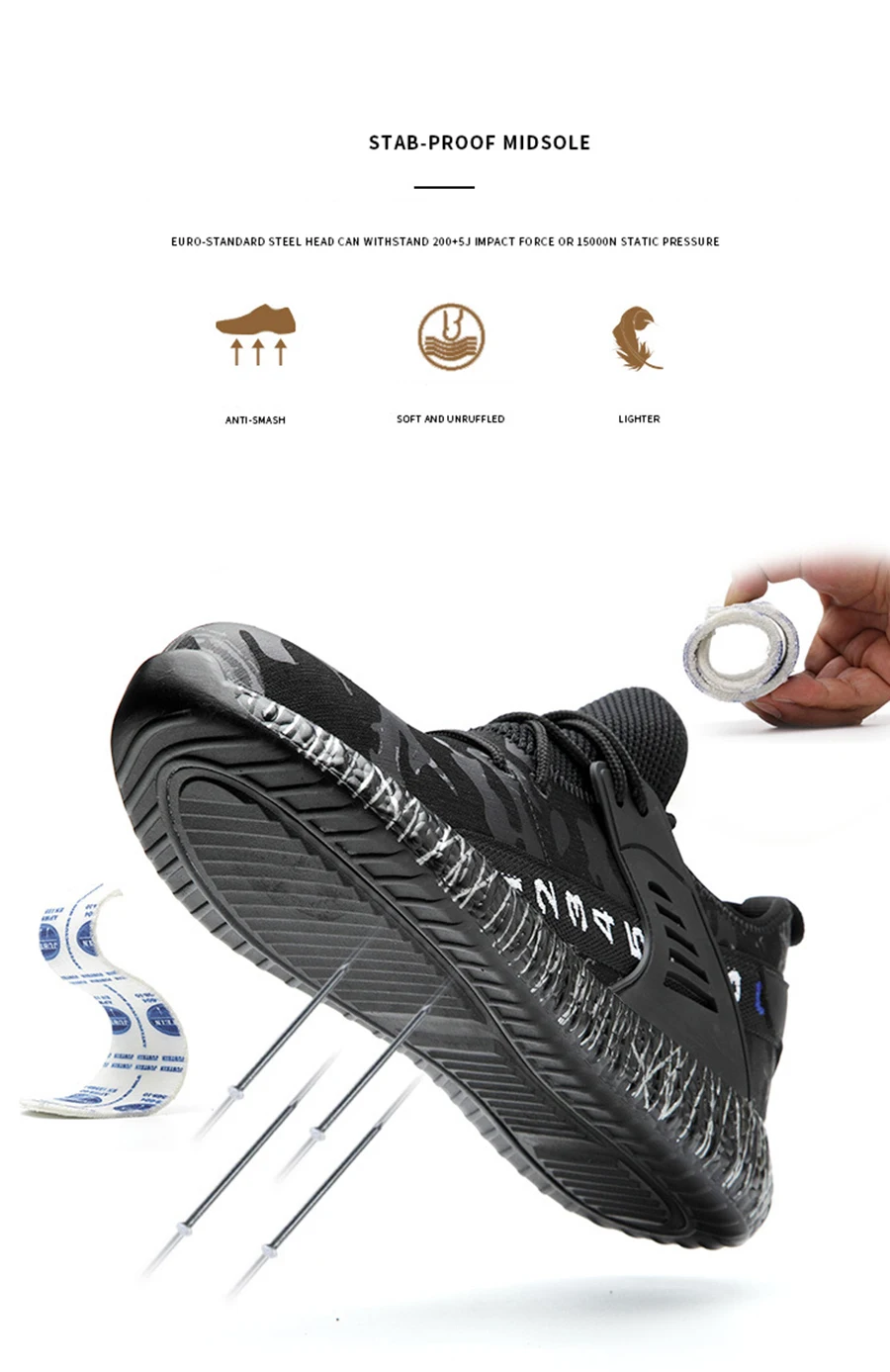 Рабочие ботинки размера плюс, строительные мужские уличные камуфляжные ботинки со стальным носком, защищенные от проколов, высокое качество, защитная обувь для мужчин