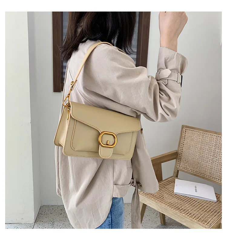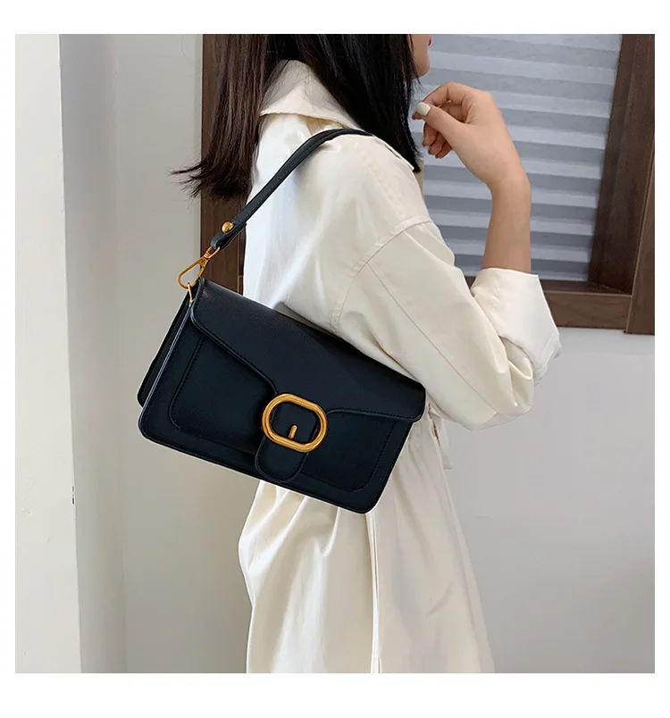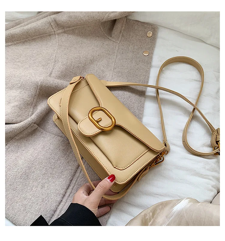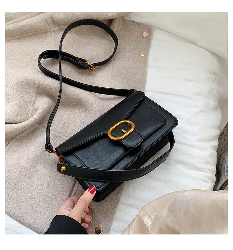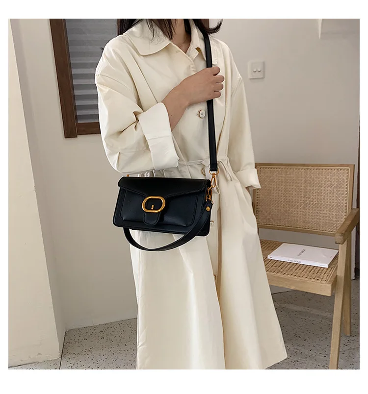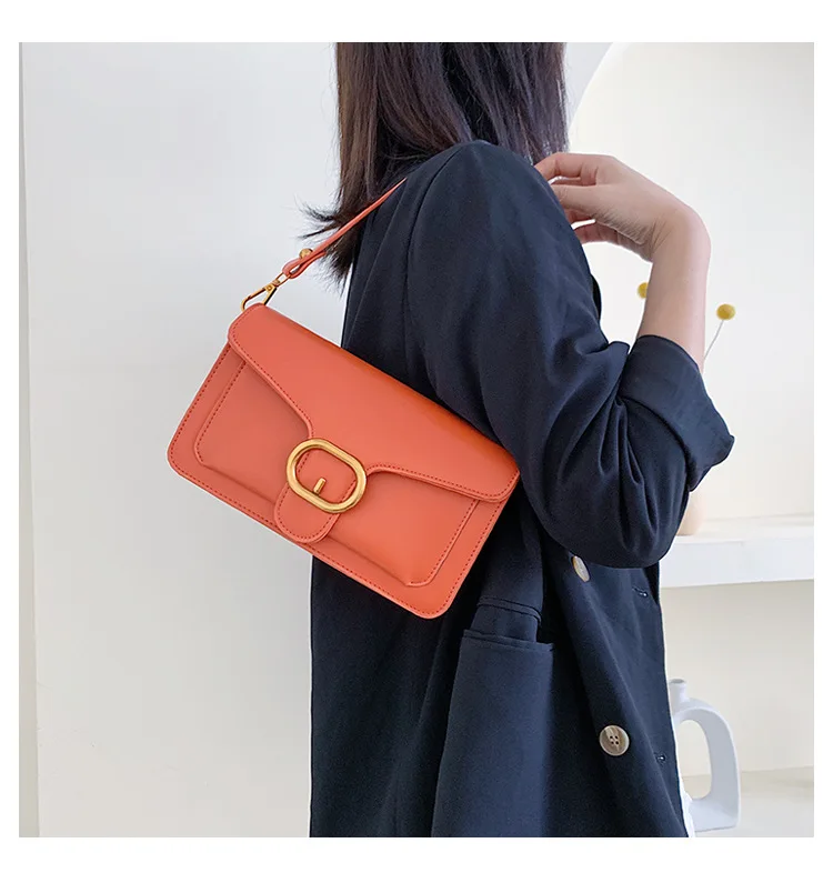 New Korean fashion pin buckle flip bag, hand-held single shoulder slant span women's bag