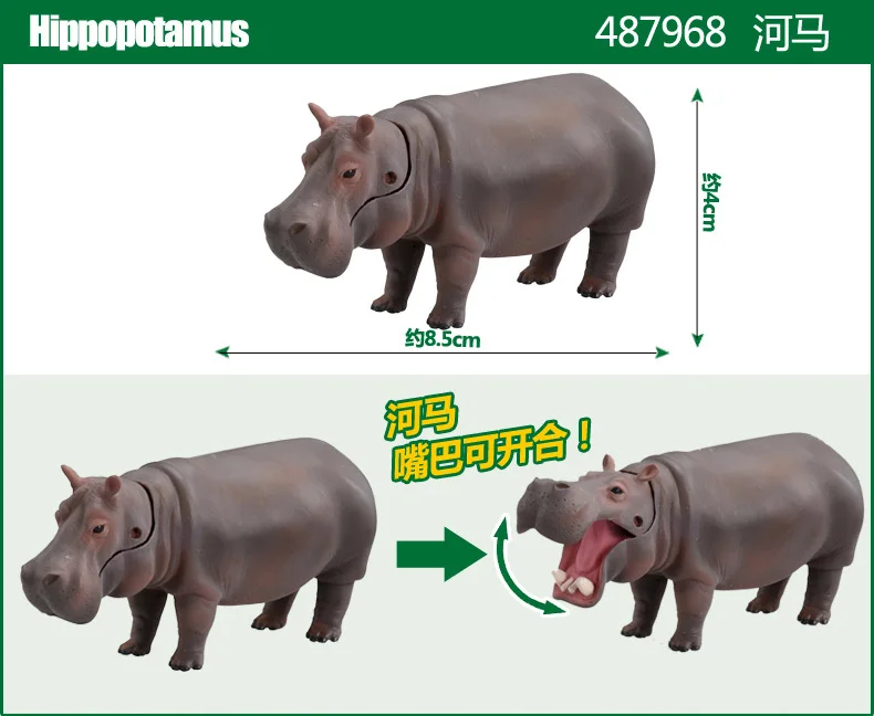 -Забавная и Воспроизводимая фигурка животного, которая позволяет узнать о разнообразии и характеристиках животных в трех измерениях. -Точки реалистичной живописи, размер ладони в коробке, посылка и низкая цена за единицу. · Бегемот открывает пасть.