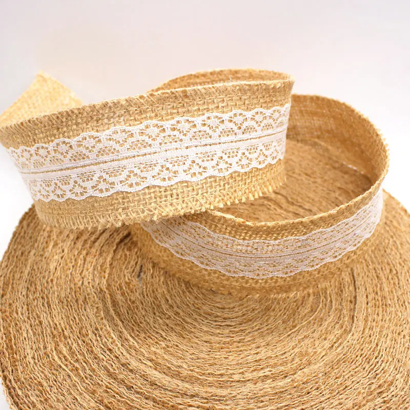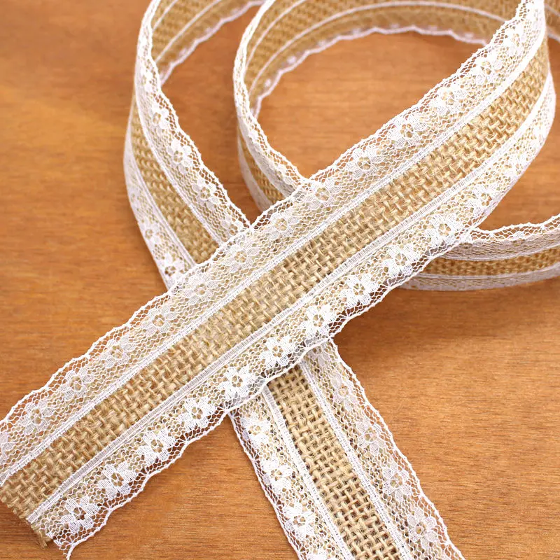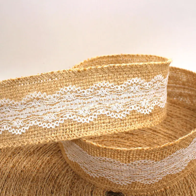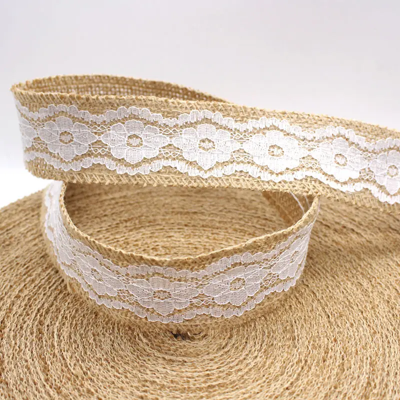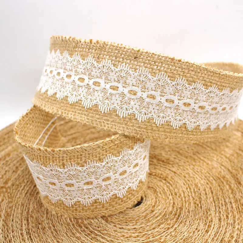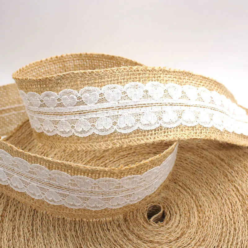 Изделия изготовлены из натурального джутового мешковины и белого кружева.