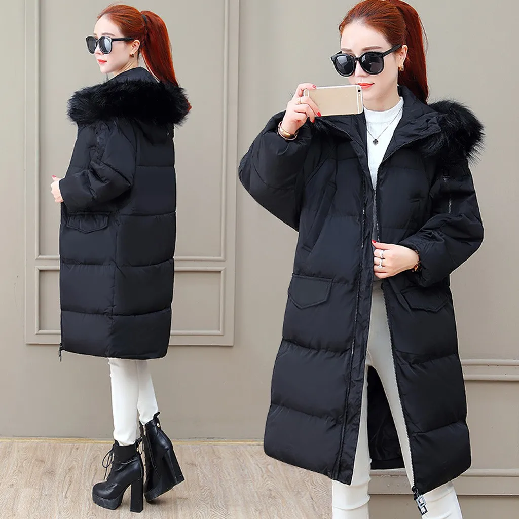 Модное женское зимнее меховое пальто с капюшоном, теплое пуховое пальто, ветровка, пальто