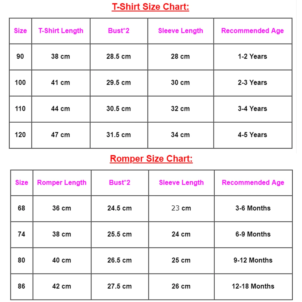 Размер Футболка Длина Размер бюста * 2 РукаваДлина Рекомендуемый возраст 90 38 см 28,5 см 28 см Для детей от 1 до 2 летКомбинезон Размеры таблицей: