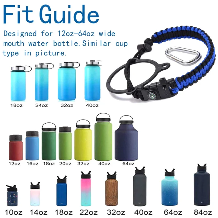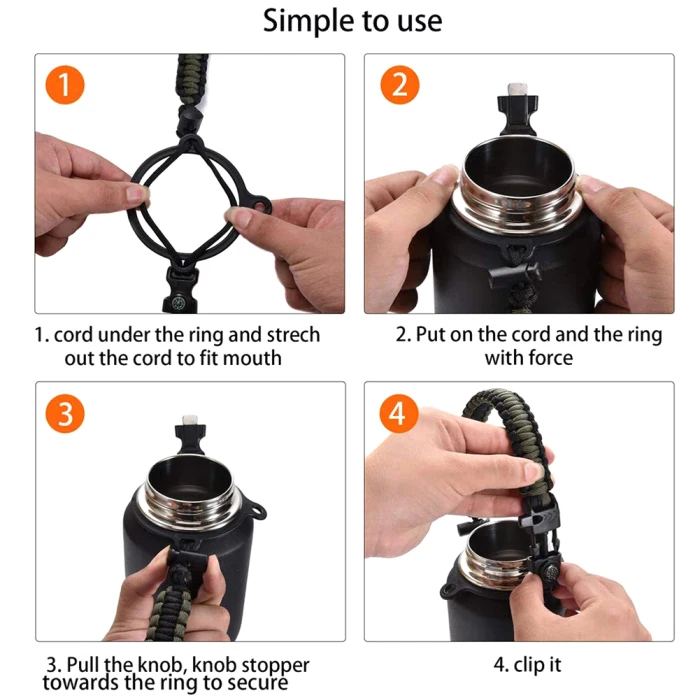 Двойной плетеный ремешок поставляется с защитным кольцом и карабином, чтобы убедиться, что ваша бутылка надежно крепится к рюкзаку, поясу, коляске и т. д.