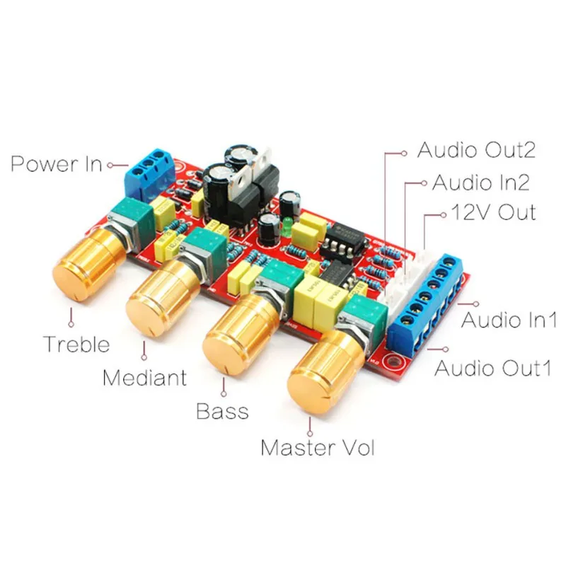 3. напряжение питания: AC dual power 12 V-18 V (замена основной скорости волны может поддерживать более высокое напряжение), Потенциометр слева направо: регулировка высоких частот-регулировка BOC-регулировка басов-основной регулятор громкости