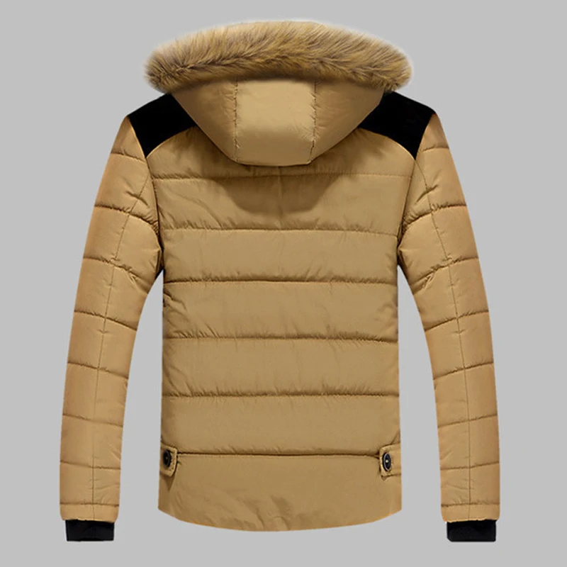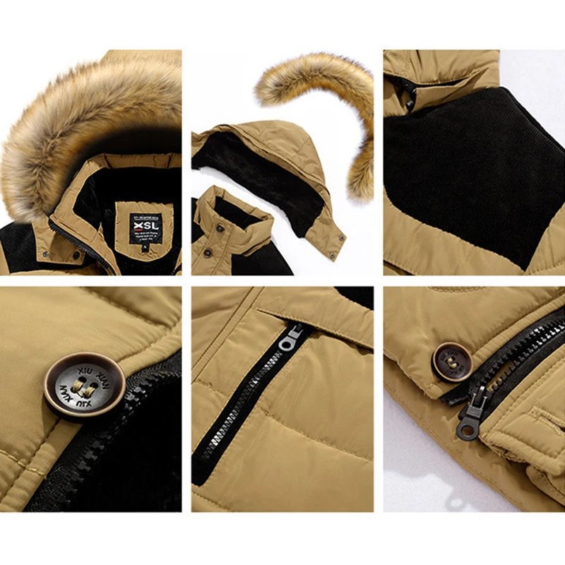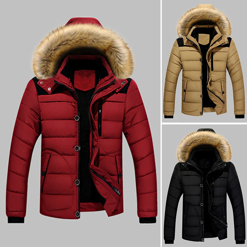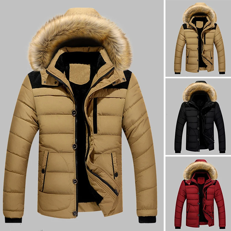 * Описание товара: мужская, утепленная, зимняя куртка, с капюшоном, с меховым воротником, на молнии, повседневная, стеганая куртка