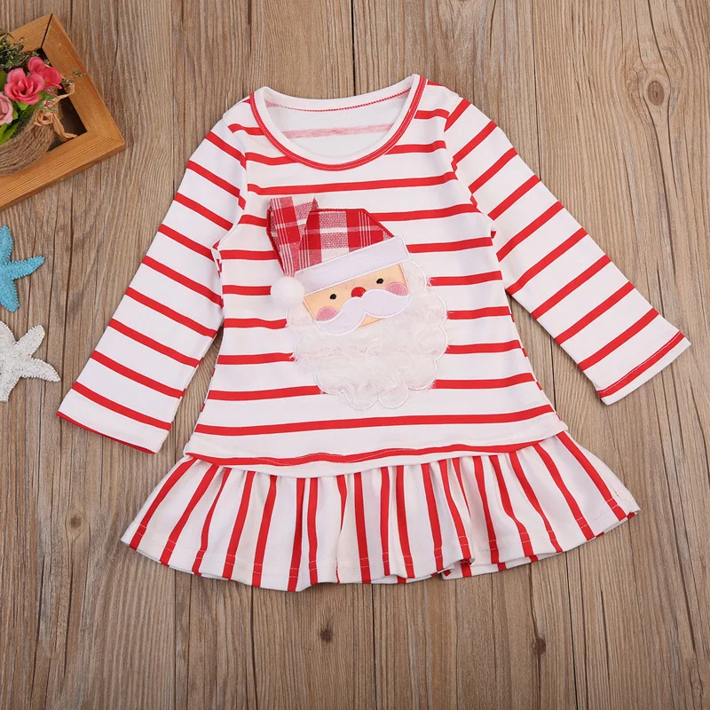 Рождественское платье в полоску с Санта Клаусом для маленьких девочек!