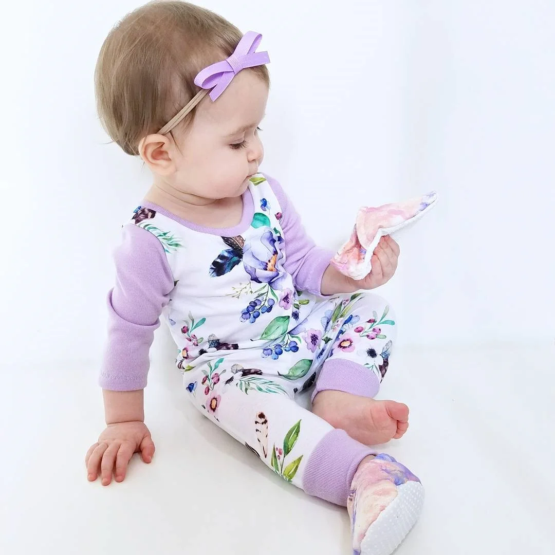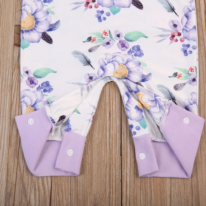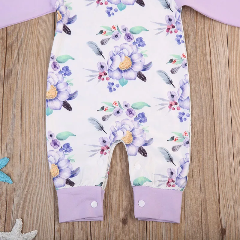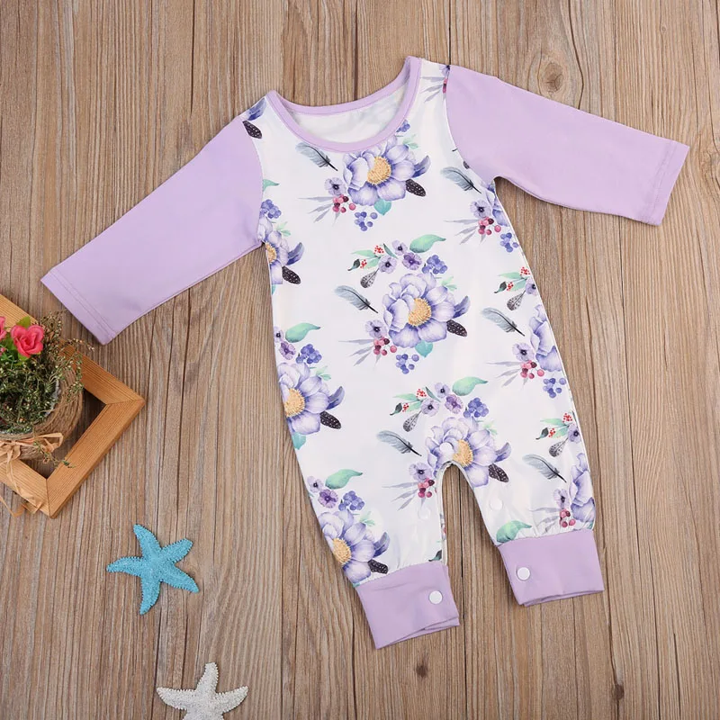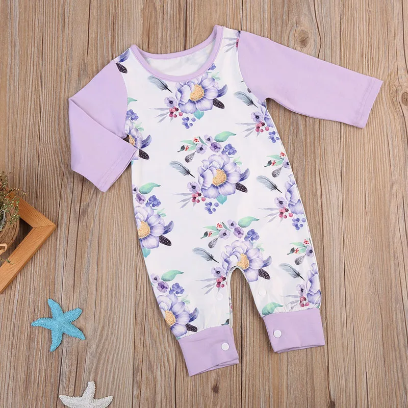 toddler Newborn Baby Girls Cotton Romper printed floral Jumpsuit Clothes Outfits long purple sleeve Rompers for baby girls