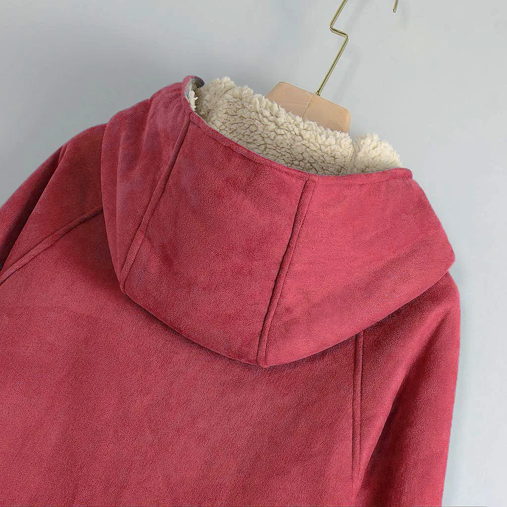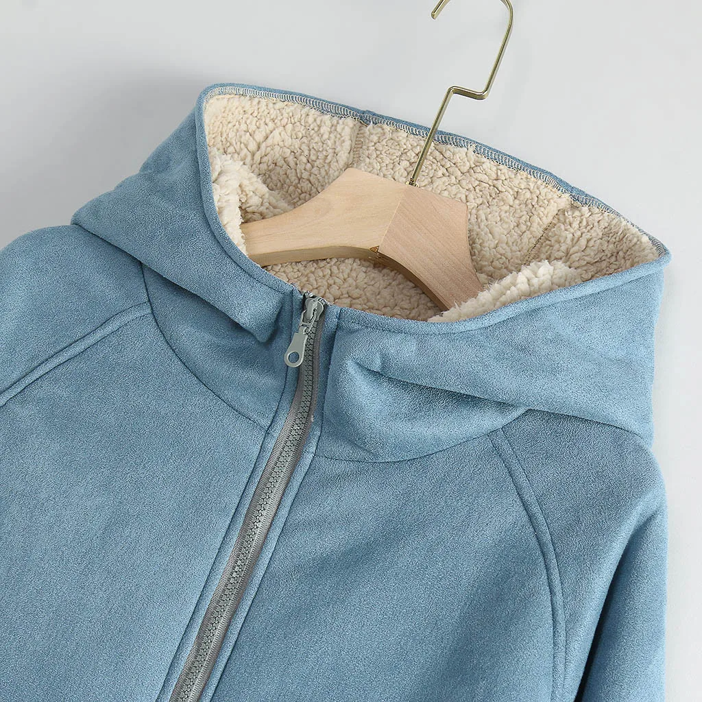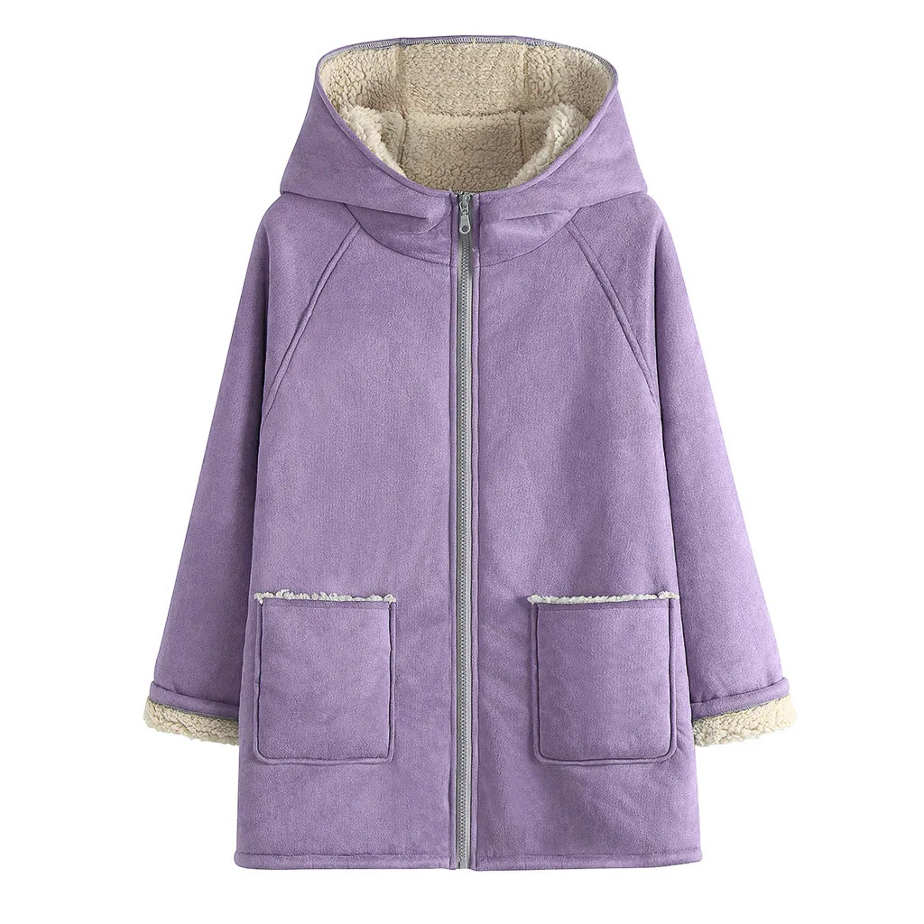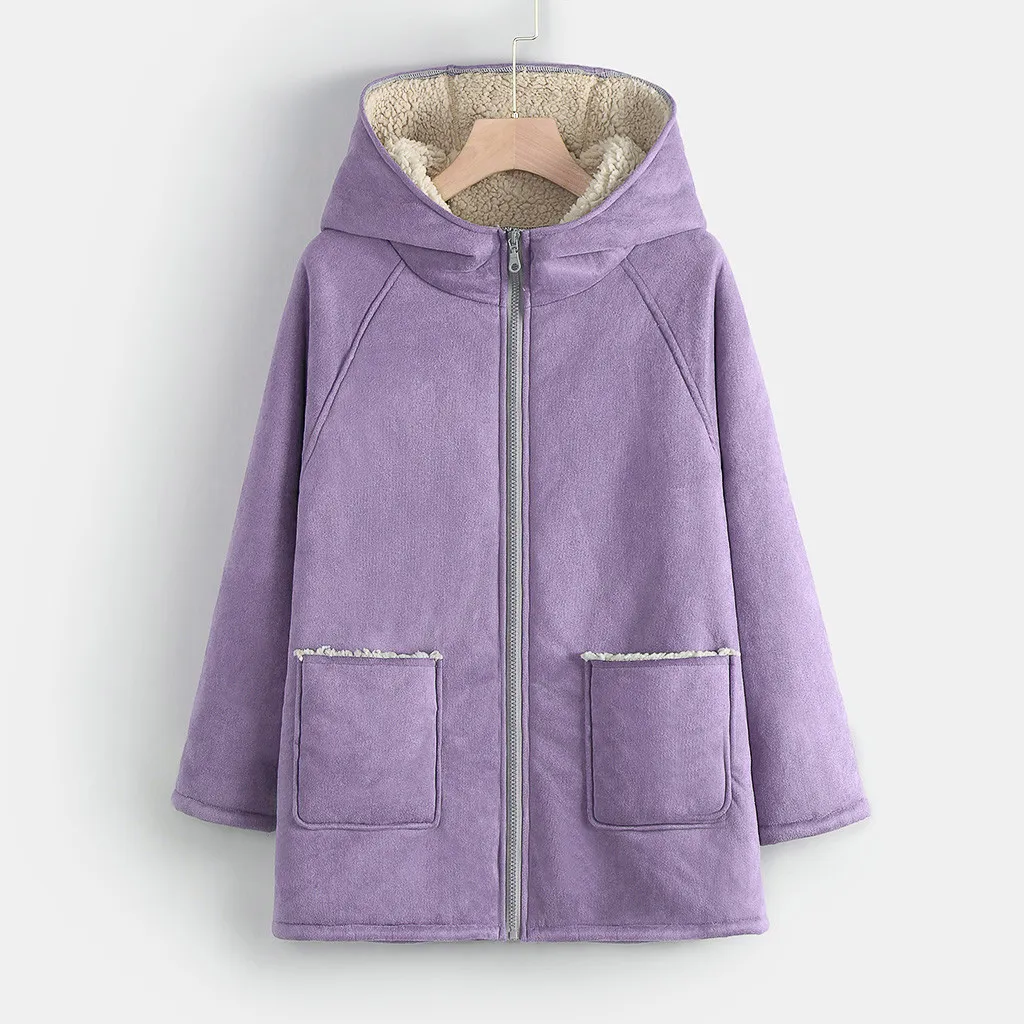 Женская мода осень и зима теплый воротник с длинными рукавами плюшевая шапка куртка
