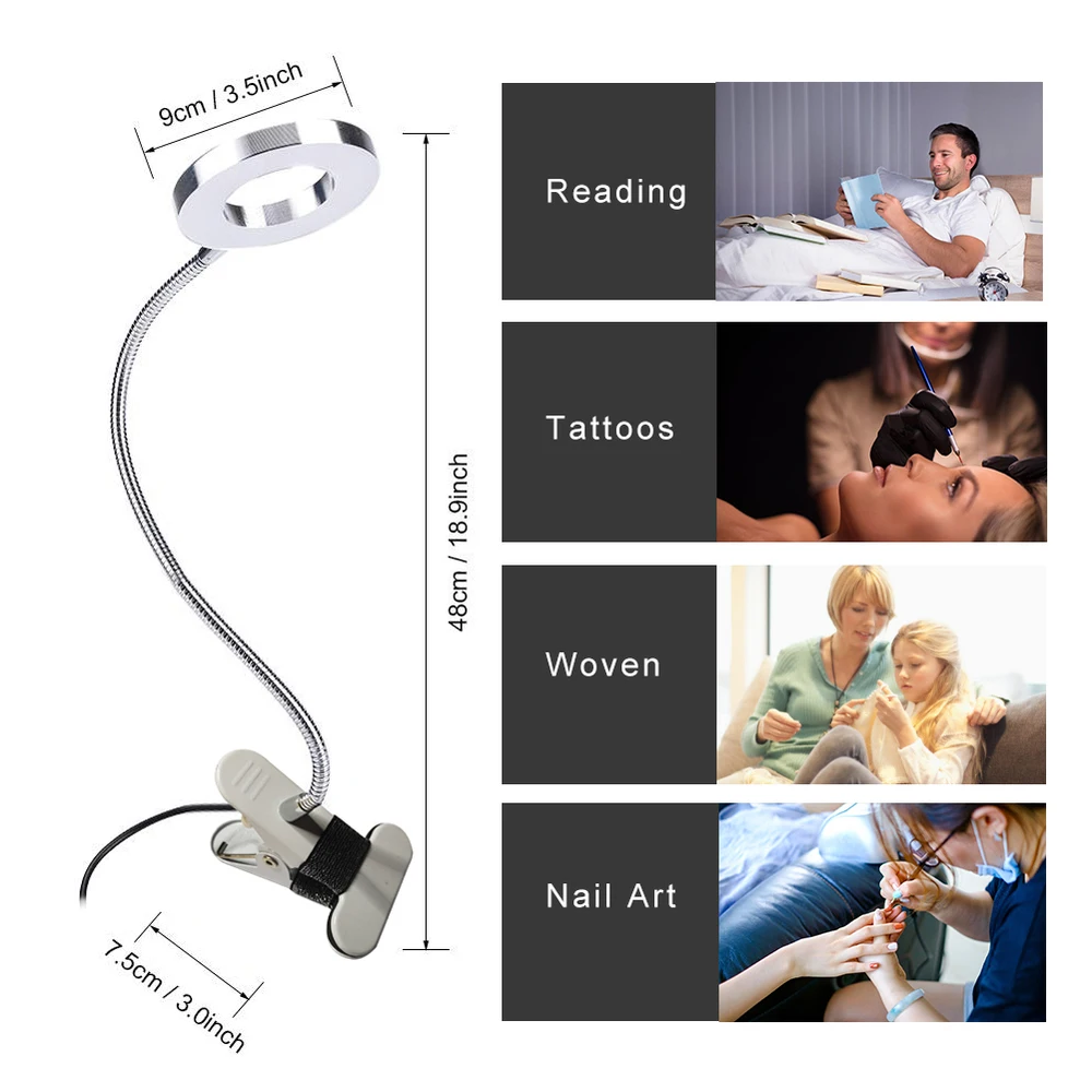 Профессиональная USB Косметическая лампа для салона бровей, губ, маникюра, дизайна ногтей, тату, косметический светильник, вращающийся на 360 градусов, настольный светодиодный светильник с зажимом