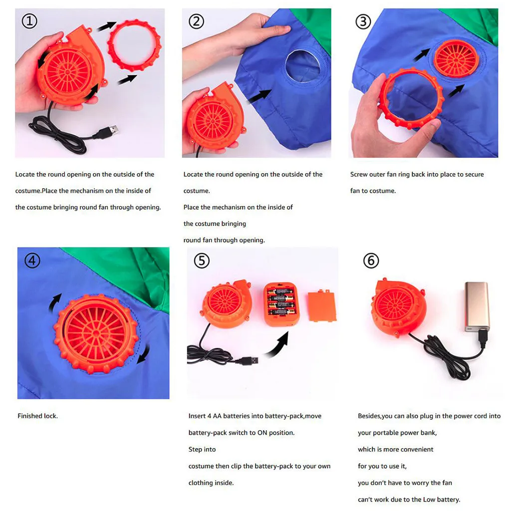 Обратите внимание: Пожалуйста, затяните внешнее кольцо, чтобы держать Веер на месте, прежде чем надеть костюм, в чехол кольцо становится Свободные во время доставки, тогда вентилятор будет выпадать; если костюм Не может быть полностью надуто, пожалуйста, ослабьте кольцо и поверните вентилятор в сторону Спереди, чтобы лучше надуть голову, также, затяните шнурки, как Плотный, насколько это возможно.