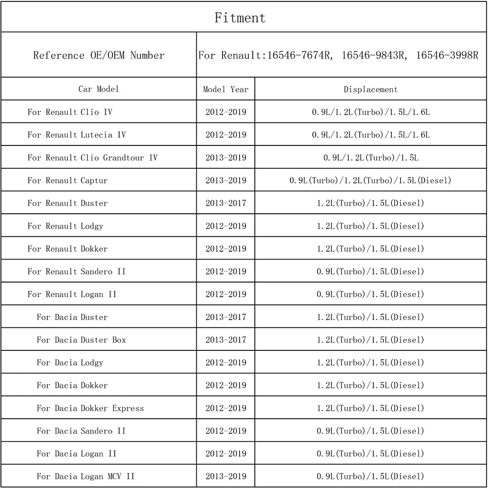 Для Dacia Logan II 2012 2013 2014 2015 2016 2017 2018 2019 0.9L(Turbo) 1.5L (Дизель)