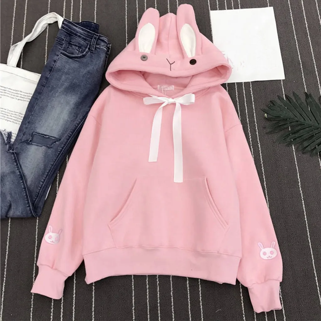 Модный женский топ с заячьими ушками; Толстовка с капюшоном; Блузка с длинными рукавами; Свободная Толстовка