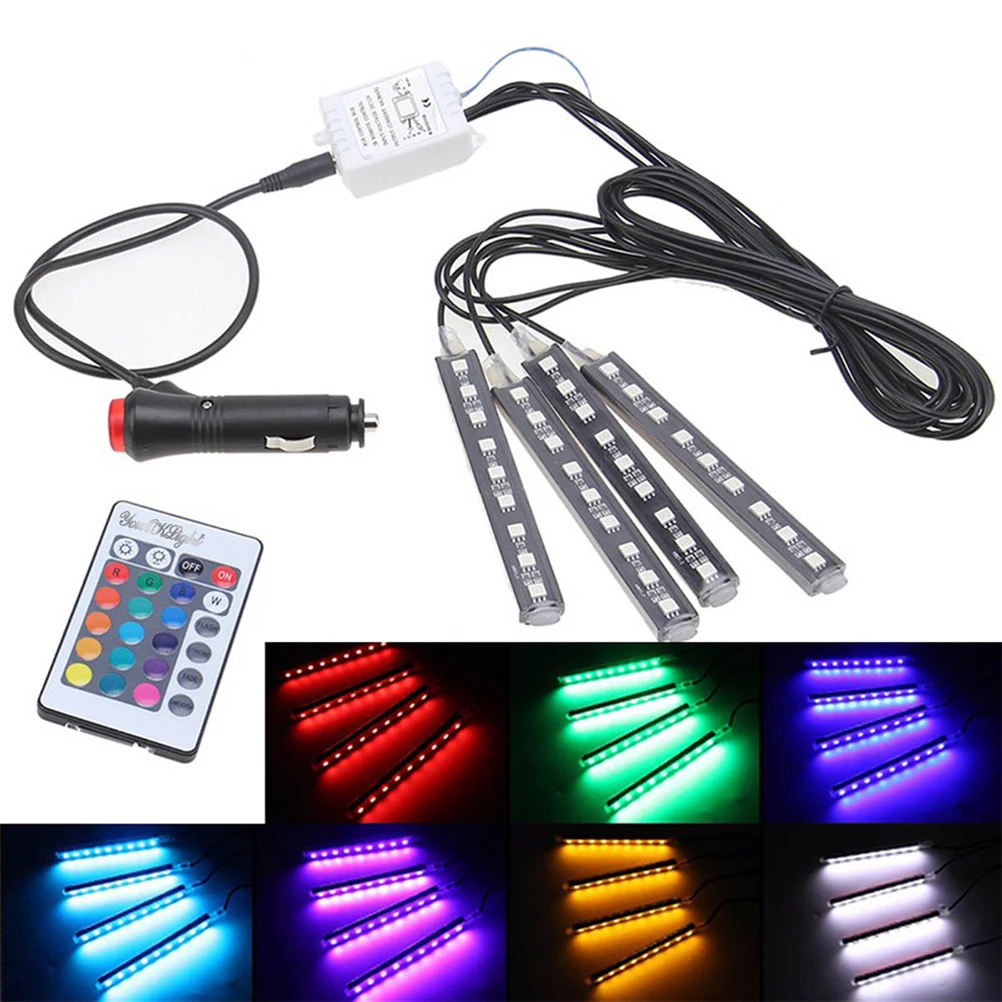 Автомобильный светодиодный ленточный светильник 4 в 1 многоцветный Автомобильный интерьер под приборной панелью светодиодный светильник ing Kit с беспроводным пультом дистанционного управления