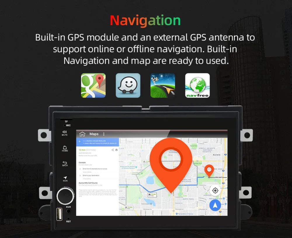 15. Онлайн-навигация: Поддержка gps-навигации, встроенный gps-приемник, Совместимость с Waze / Navfree / Google Map и т. д. драйвер может избежать пробки заранее.1. Чистый Android 9,0 OS, HD 1024*600 емкостный экран