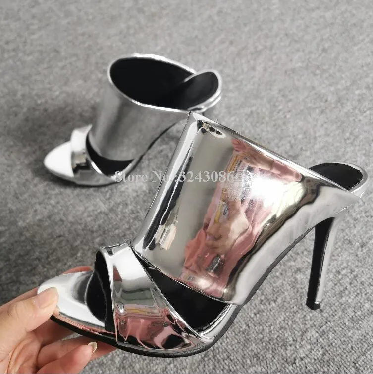 Модные Серебристые Босоножки на каблуке-шпильке; Женские открытые шлепанцы с открытым носком; Женская повседневная обувь с реальными фотографиями; Прямая поставка