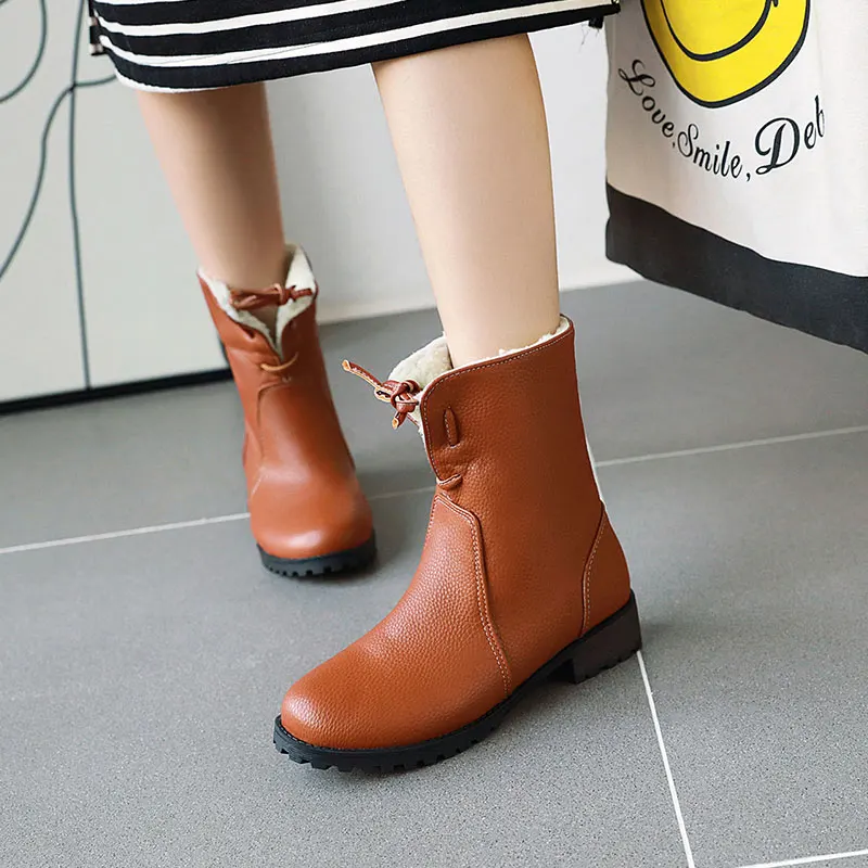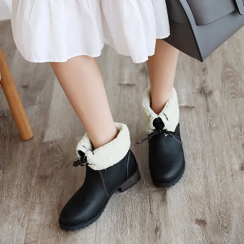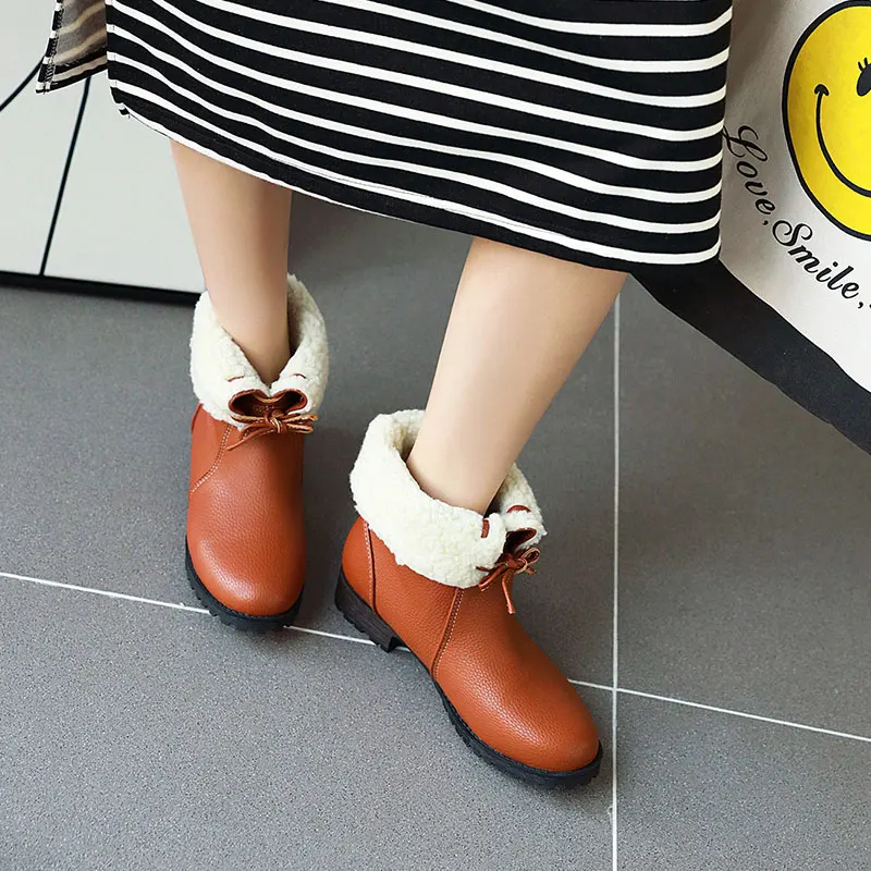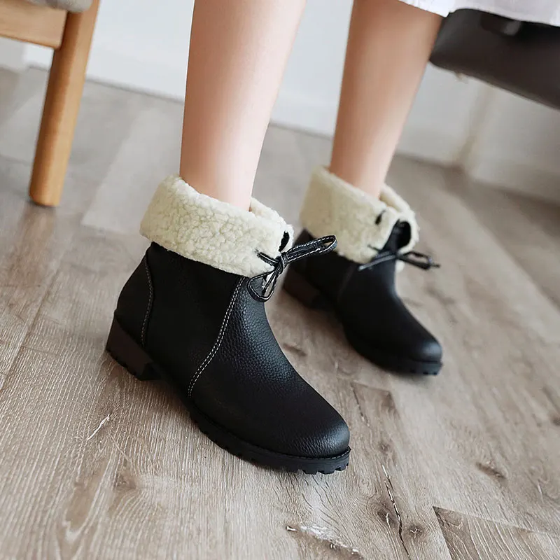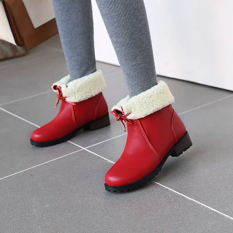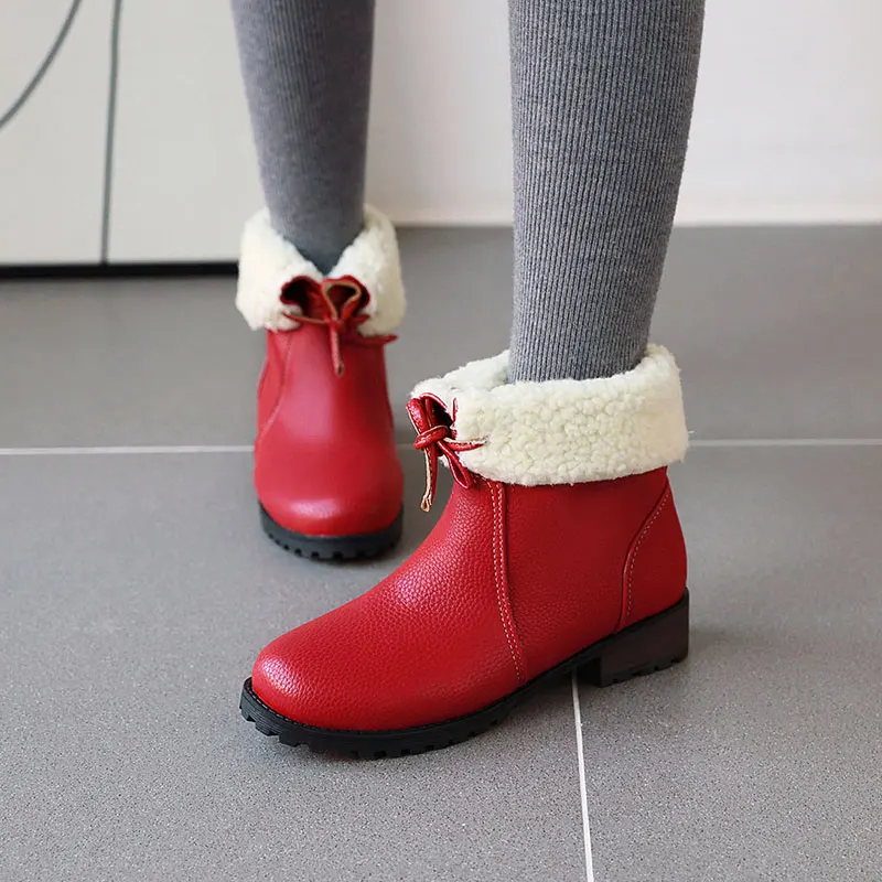 Lloprost ke/модные красные, желтые, черные теплые зимние ботинки на толстом каблуке со шнуровкой; Женская зимняя обувь; Женские ботильоны размера плюс