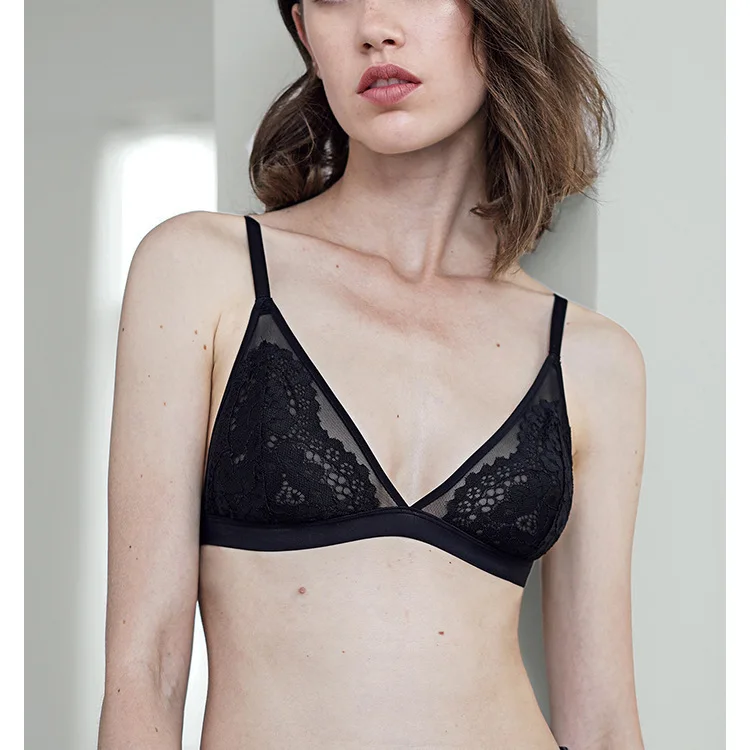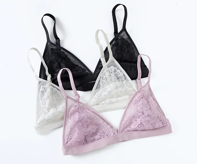 Нежный цветочный кружевной бюстгальтер без косточек с прозрачным сексуальным шлейфом. -Застежка на спине -Регулируемый плечевой ремень