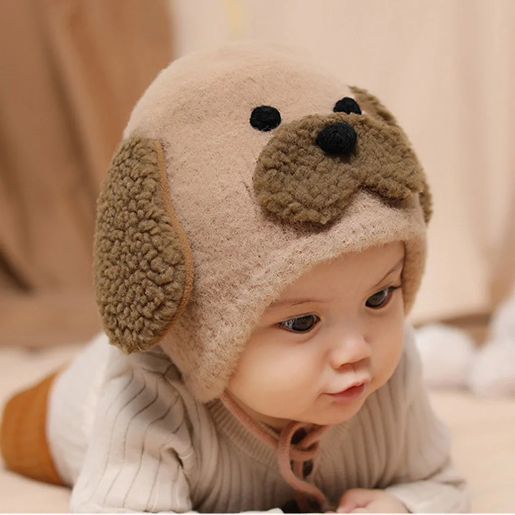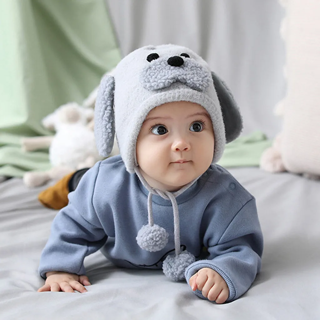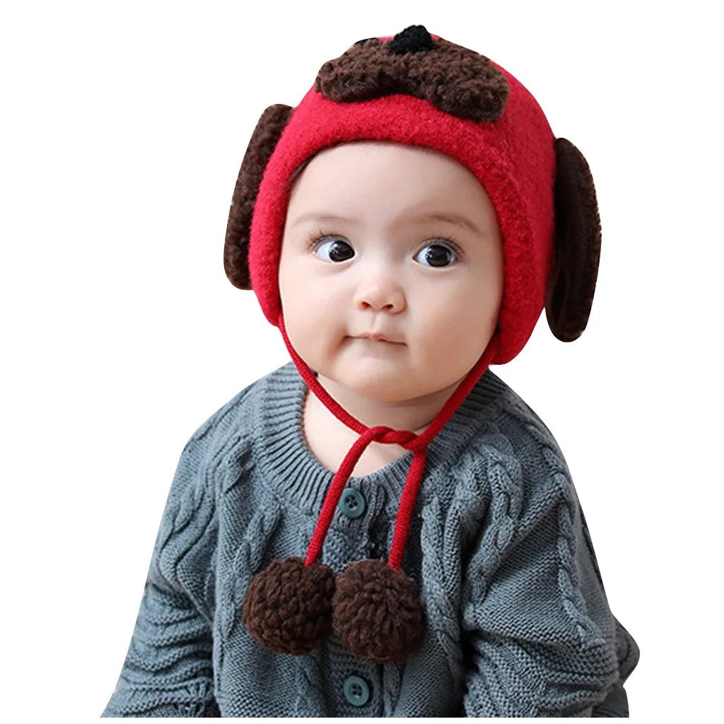 Осень-зима, детская шапка, Супер милые теплые шапки с рисунком собаки + шарф, Детские кроше вязаные шапочки для девочек и мальчиков, реквизит для фотосессии, HOOLER